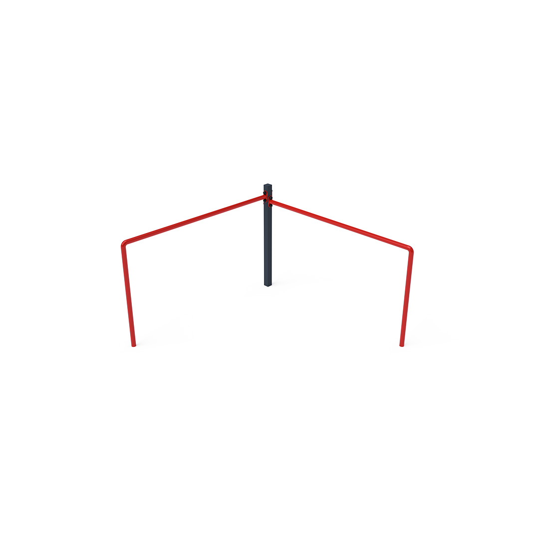 Bezúdržbová balanční dvojitá hrazda je herním prvkem, díky kterému děti trénují svou sílu, kondici a obratnost. Každá hrazda má jinou výšku, aby si mohly hrát jak větší, tak menší děti. Vyrobena je ze žárově zinkované oceli, která je upravena práškovou vypalovanou barvou. Spojovací materiály jsou nerezové a chráněné krytkami pro zvýšení jejich životnosti a bezpečnosti. Jako dopadovou plochu lze použít travnatý povrch, doporučujeme však zatravňovací rohož.