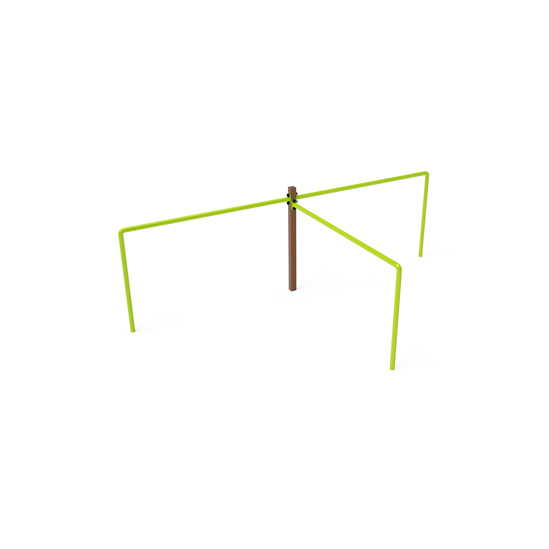 Bezúdržbová balanční trojitá hrazda je herním prvkem, díky kterému děti trénují svou sílu, kondici a obratnost. Vyrobena je ze žárově zinkované oceli, která je upravena práškovou vypalovanou barvou. Spojovací materiály jsou nerezové a chráněné krytkami pro zvýšení jejich životnosti a bezpečnosti. Jako dopadovou plochu lze použít travnatý povrch, doporučujeme však použití zatravňovací rohože.