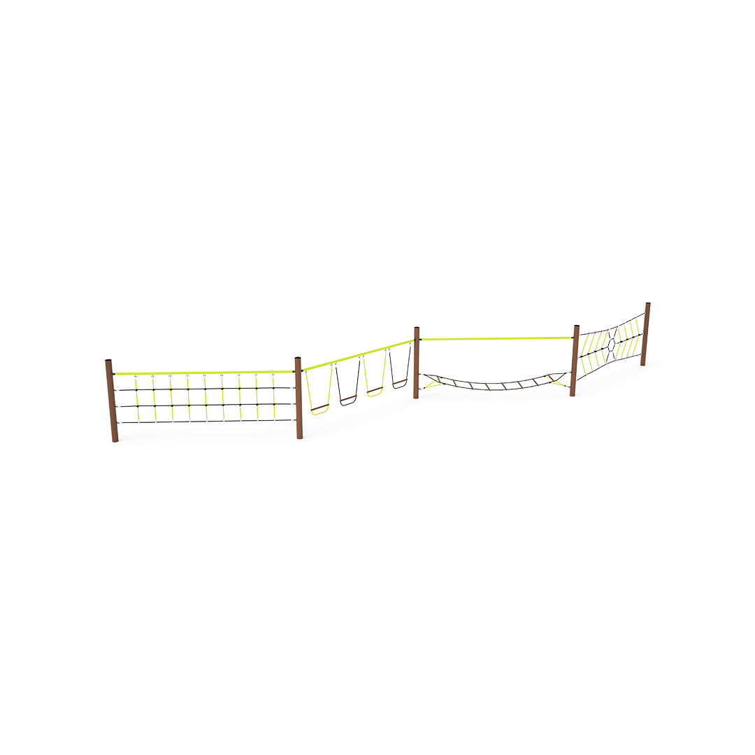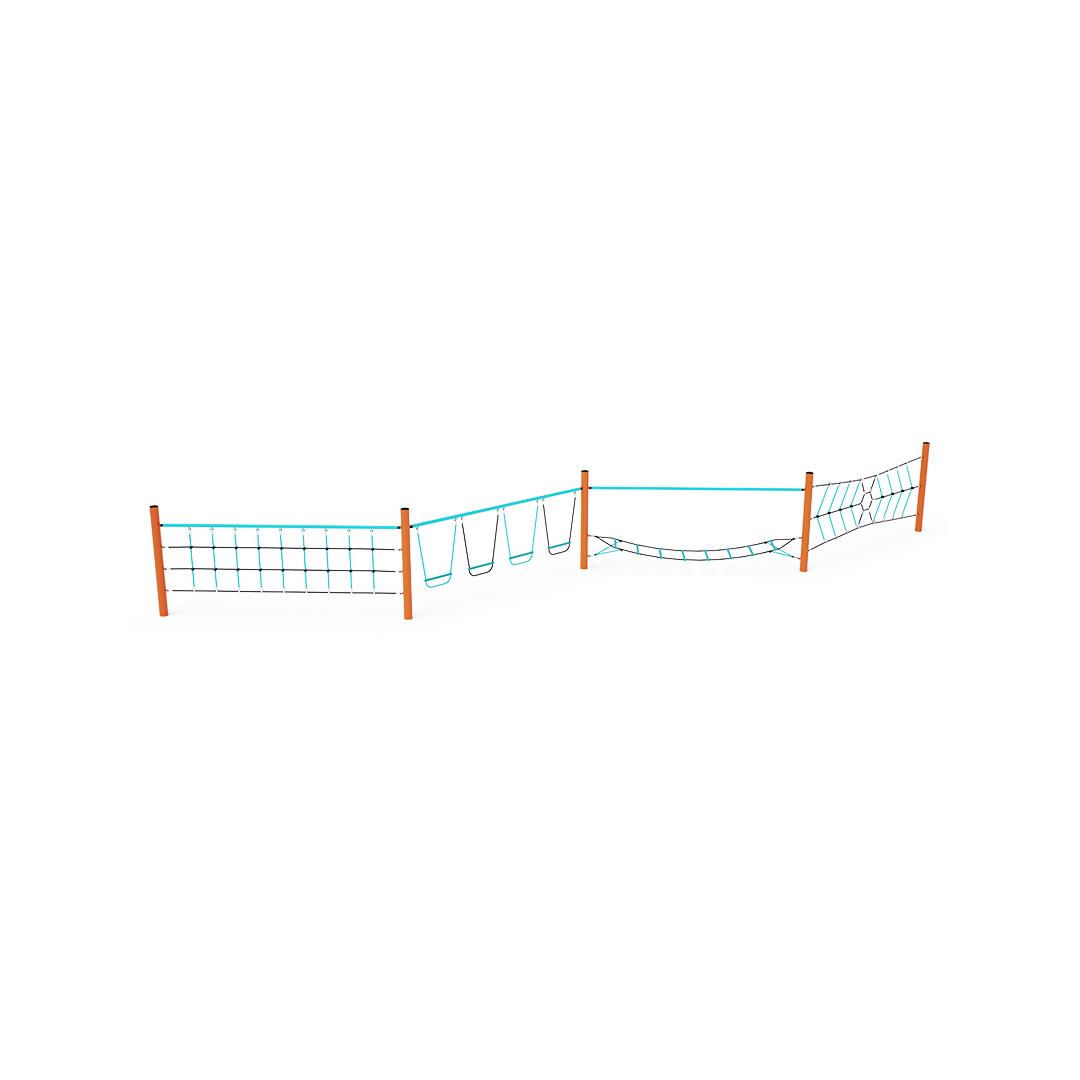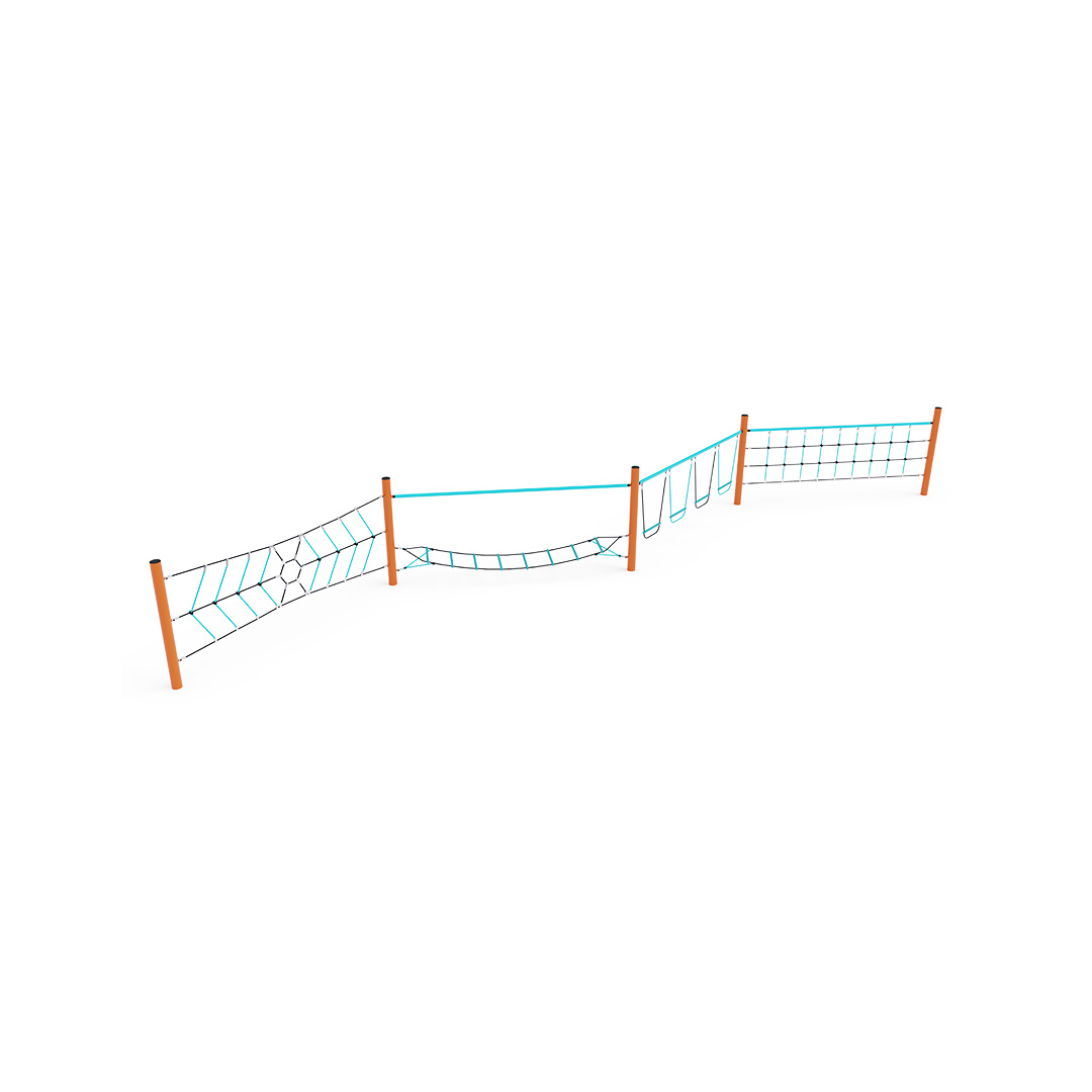 Opičí dráha vytvořená kombinací čtyř částí. Část vytvořená svislou lanovou pavoučí sítí, část vytvořená horizontální „visící“ sítí zabaví děti svou vratkostí, část se svisle zavěšenými stupačkami a část vytvořená svislou lanovou sítí prověří sílu rukou každého dítěte. Herní prvek je vyroben ze žárově zinkované oceli s kvalitní povrchovou úpravou, spoje jsou nerezové a zakryté plastovými krytkami pro zvýšení bezpečnosti a životnosti spojů. Lana jsou vyrobena z polyesterových vláken, která jsou vinuta kolem středu. Tato konstrukce lana zvyšuje jeho pevnost a odolnost proti mechanickému namáhání. Samotný polyester má spoustu kladných vlastností. Je odolný vůči mikroorganismům, povětrnostním vlivům, rychle schne po dešti, je stálobarevný a vyznačuje se vysokou pevností.