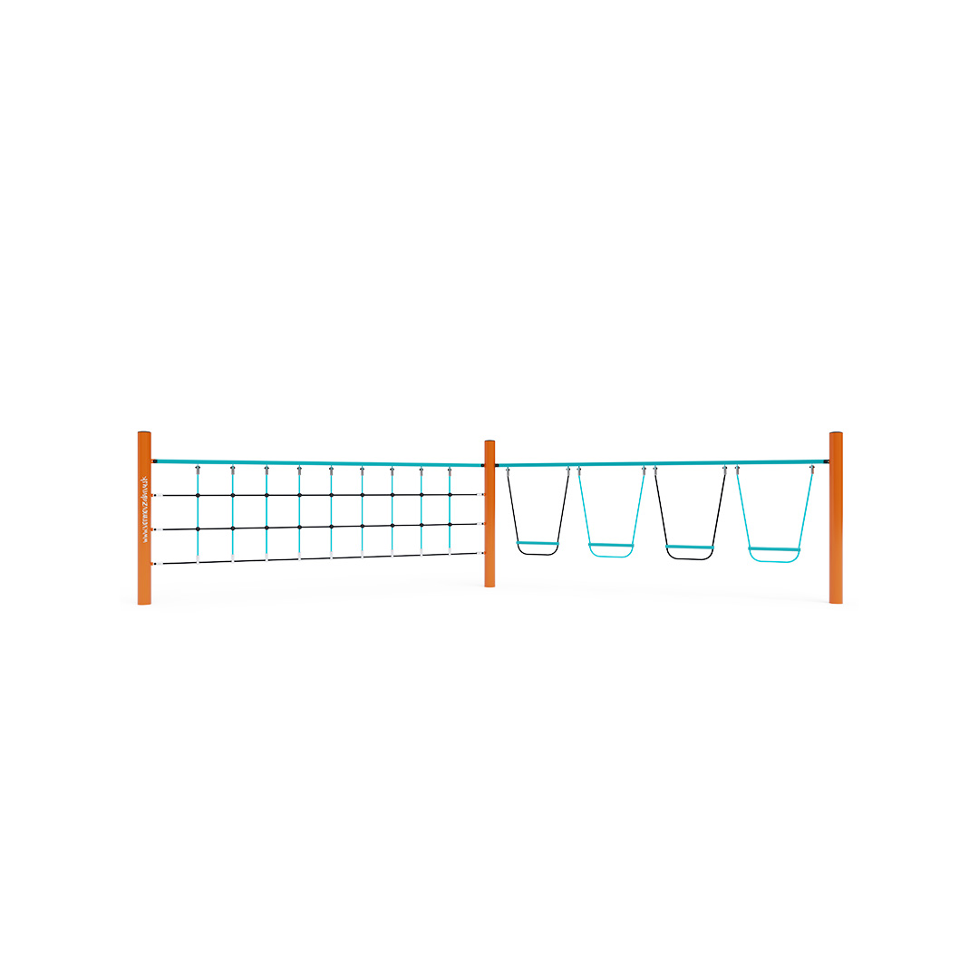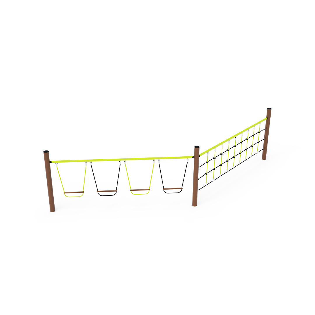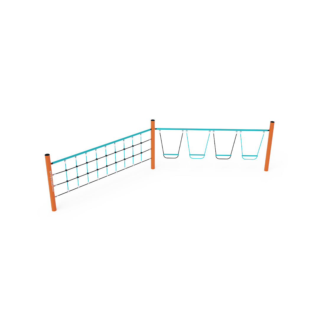 Opičí dráha vytvořená kombinací dvou částí. Svislá lanová síť prověří sílu rukou každého dítěte a svisle zavěšené stupačky dětem ukáží, jak je to zábavné a zároveň namáhavé, když nestojí nohama na pevné zemi. Herní prvek je vyroben ze žárově zinkované oceli s kvalitní povrchovou úpravou, spoje jsou nerezové a zakryté plastovými krytkami pro zvýšení bezpečnosti a životnosti spojů. Lana jsou vyrobena z polyesterových vláken, která jsou vinuta kolem středu. Tato konstrukce lana zvyšuje jeho pevnost a odolnost proti mechanickému namáhání. Samotný polyester má spoustu kladných vlastností. Je odolný vůči mikroorganismům, povětrnostním vlivům, rychle schne po dešti, je stálobarevný a vyznačuje se vysokou pevností.