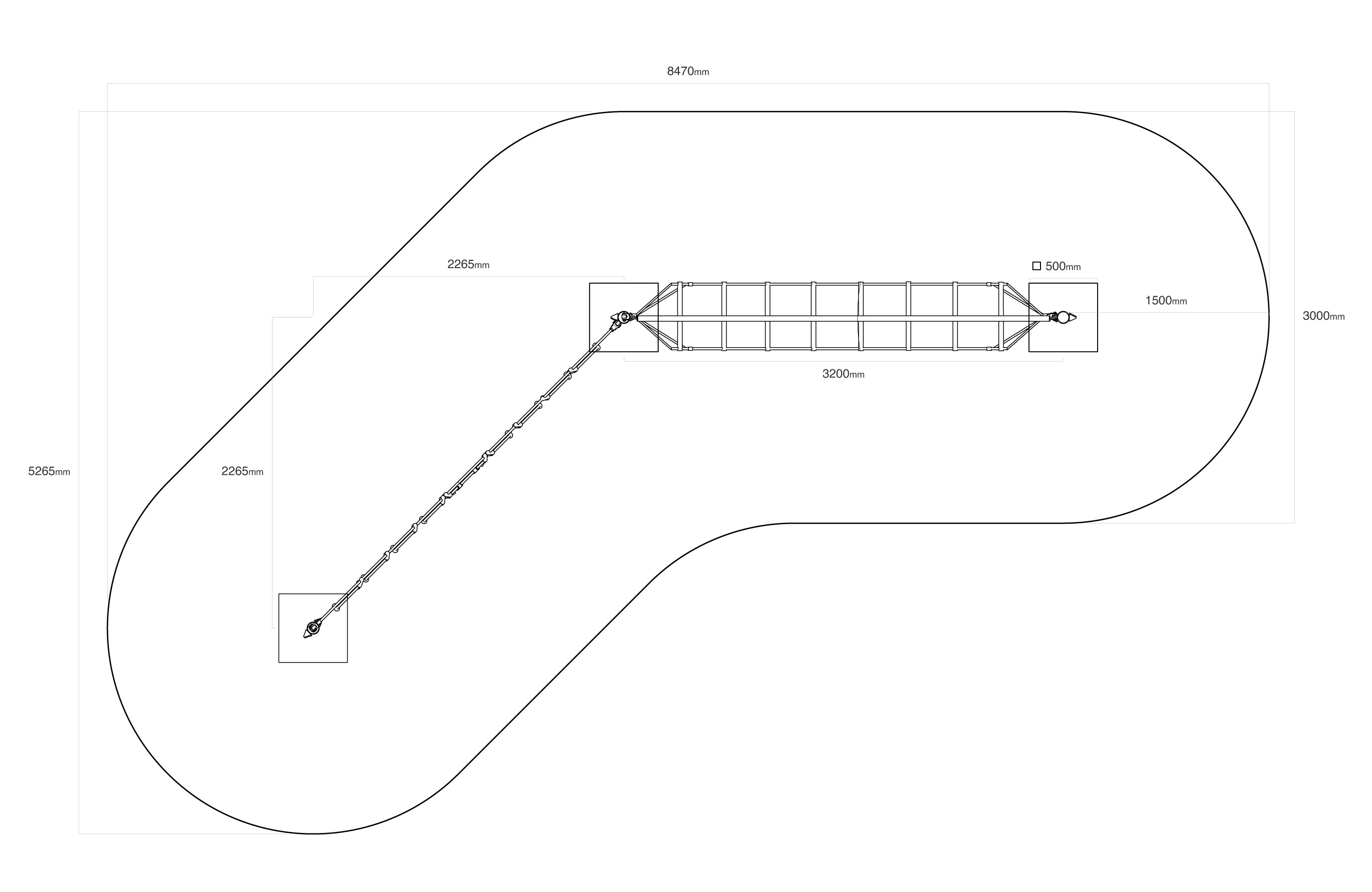 Dopadová plocha: 8,47 × 5,2 />Materiál: Žárově zinkovaná ocel, polyesterová lana, nerezový spojovací materiál