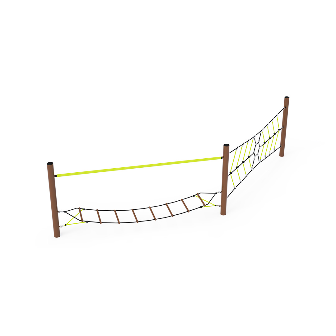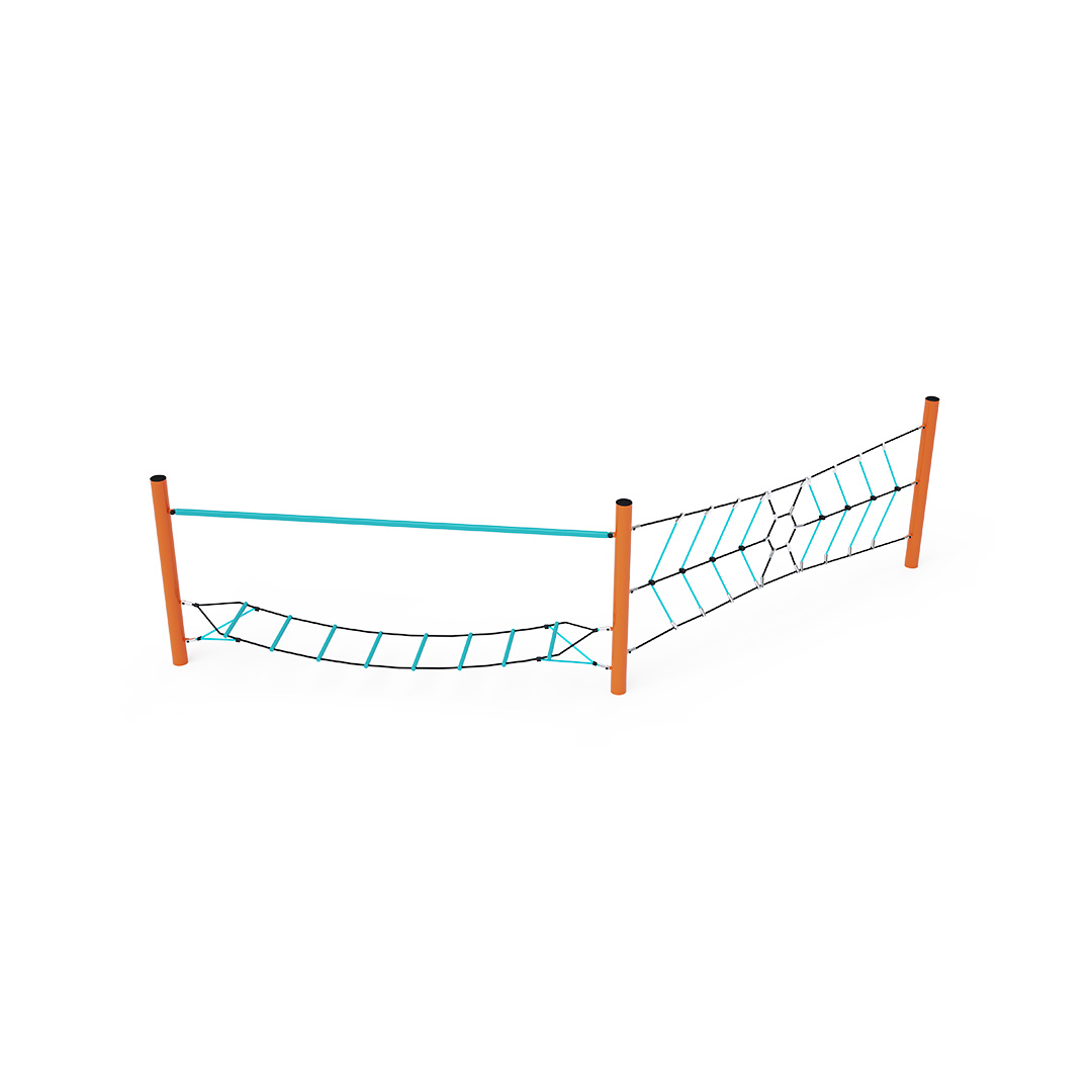 Opičí dráha vytvořená kombinací dvou částí. Část vytvořená svislou lanovou pavoučí sítí prověří sílu rukou každého dítěte, které se podujme na tuto misi. Část vytvořená horizontální „visící“ sítí zabaví děti svou vratkostí. Přejít po stupačkách, které se naklánějí do stran, není vůbec snadné. Herní prvek je vyroben ze žárově zinkované oceli s kvalitní povrchovou úpravou, spoje jsou nerezové a zakryté plastovými krytkami pro zvýšení bezpečnosti a životnosti spojů. Lana jsou vyrobena z polyesterových vláken, která jsou vinuta kolem středu. Tato konstrukce lana zvyšuje jeho pevnost a odolnost proti mechanickému namáhání. Samotný polyester má spoustu kladných vlastností. Je odolný vůči mikroorganismům, povětrnostním vlivům, rychle schne po dešti, je stálobarevný a vyznačuje se vysokou pevností.
