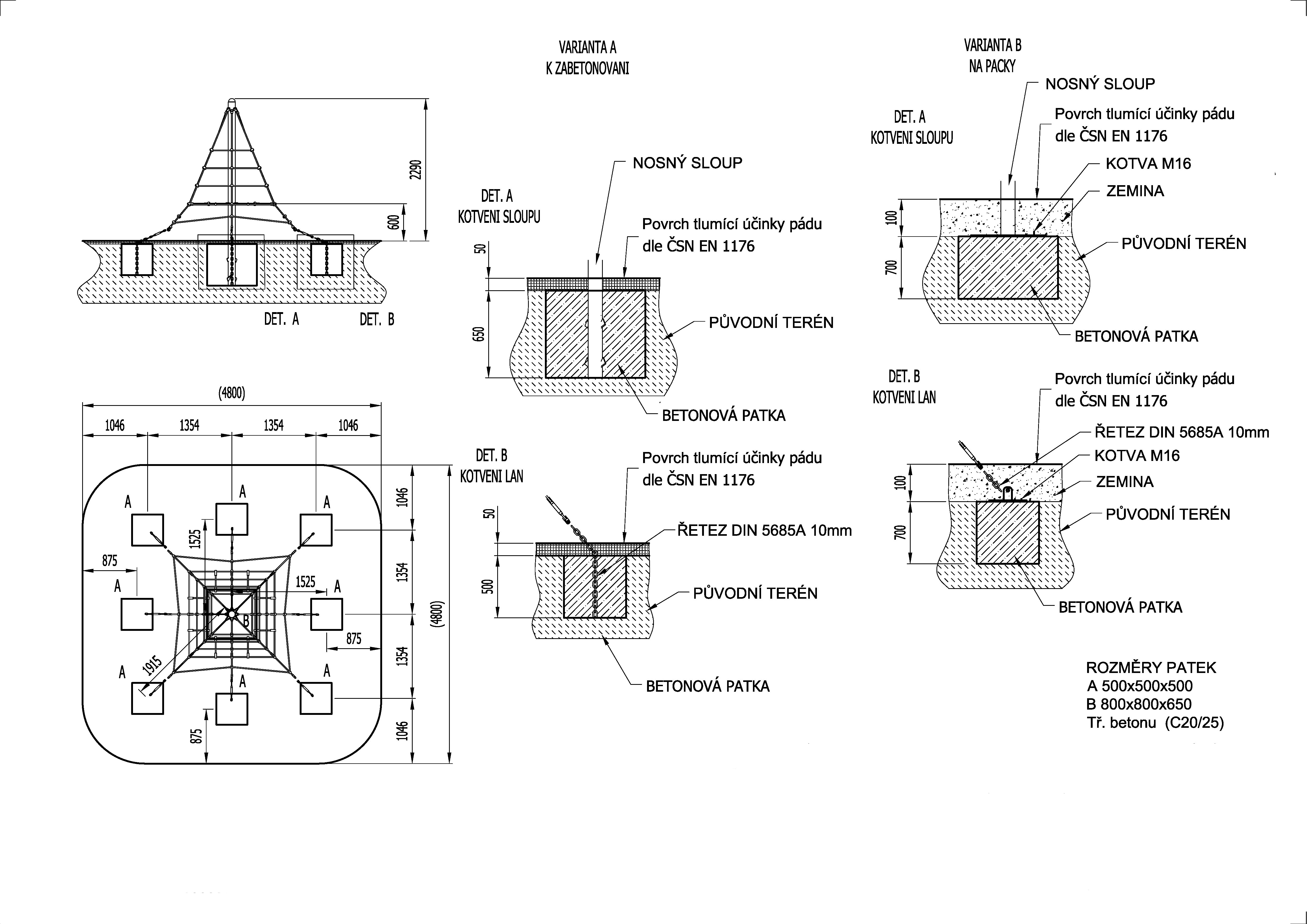 Dopadová plocha: 4,8 × 4,8 m (v souladu s ČSN EN 1176-1)
