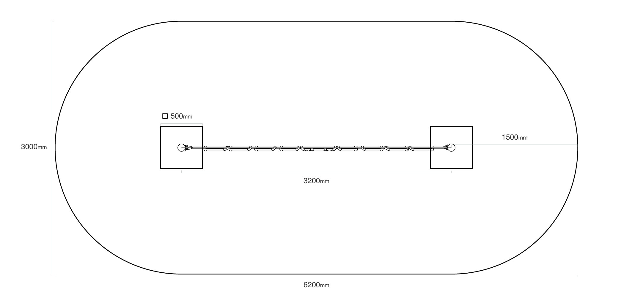 Dopadová plocha: 6,2 × 3,0/>Materiál: Žárově zinkovaná ocel, polyesterová lana, nerezový spojovací materiál