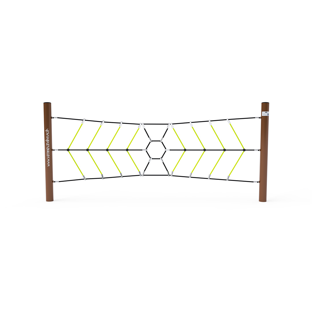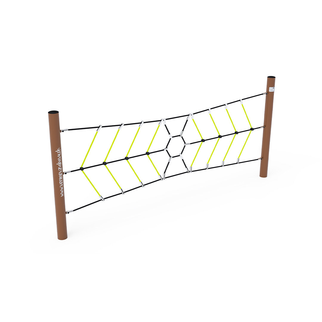 Opičí dráha vytvořená svislou lanovou pavoučí sítí prověří sílu rukou každého dítěte, které se podujme na tuto misi. Herní prvek je vyroben ze žárově zinkované oceli s kvalitní povrchovou úpravou, spoje jsou nerezové a zakryté plastovými krytkami pro zvýšení bezpečnosti a životnosti spojů. Lana jsou vyrobena z polyesterových vláken, která jsou vinuta kolem středu. Tato konstrukce lana zvyšuje jeho pevnost a odolnost proti mechanickému namáhání. Samotný polyester má spoustu kladných vlastností. Je odolný vůči mikroorganismům, povětrnostním vlivům, rychle schne po dešti, je stálobarevný a vyznačuje se vysokou pevností.