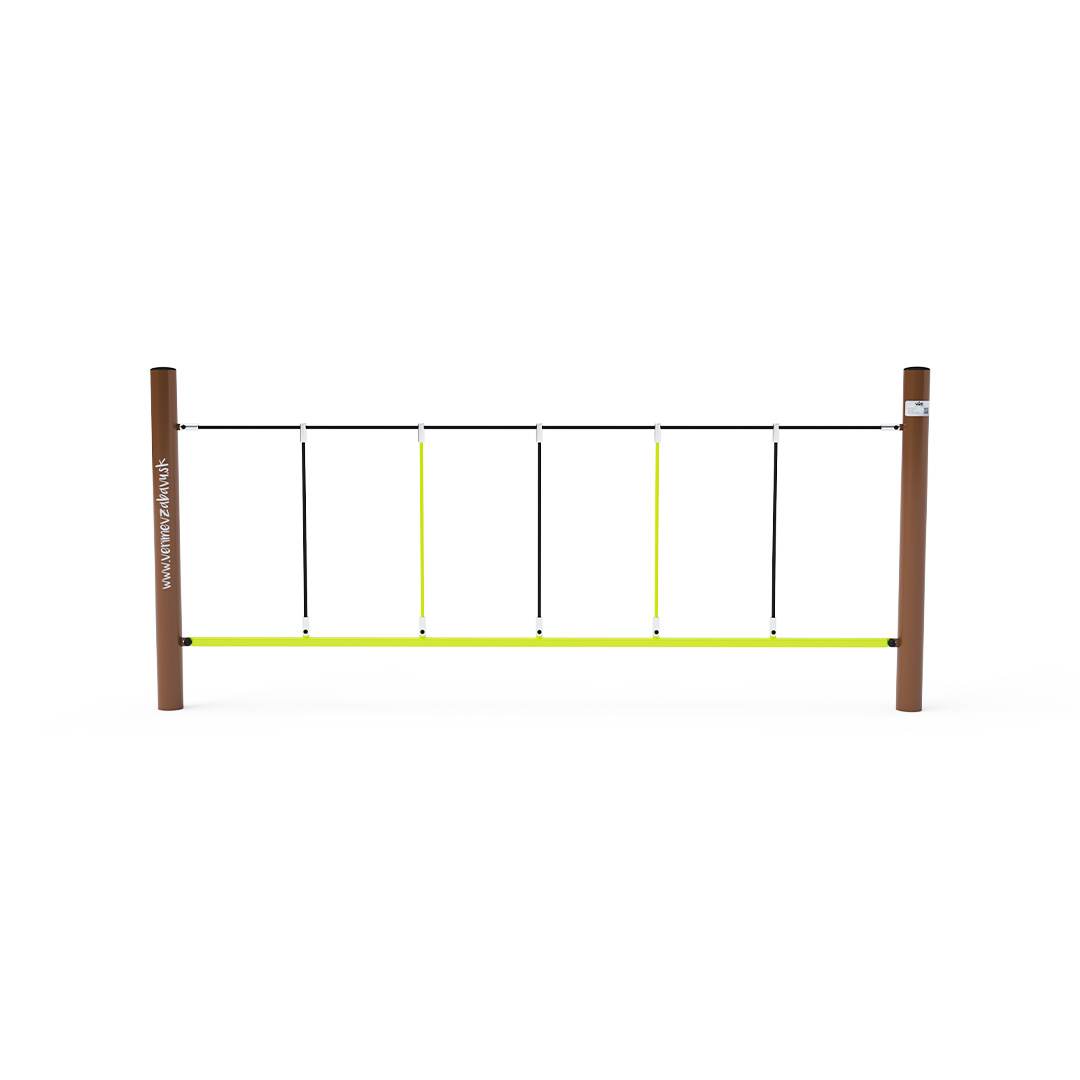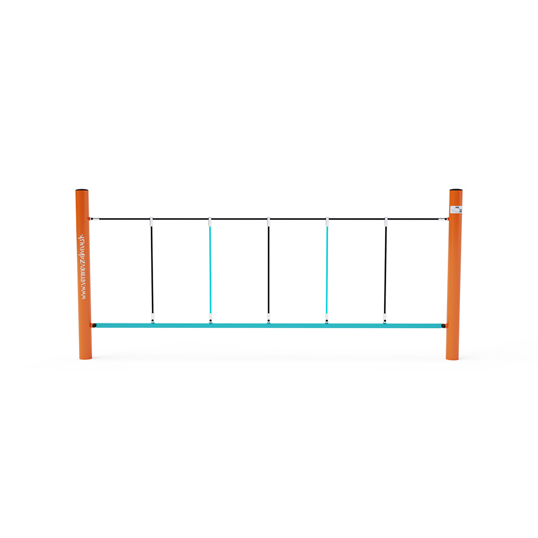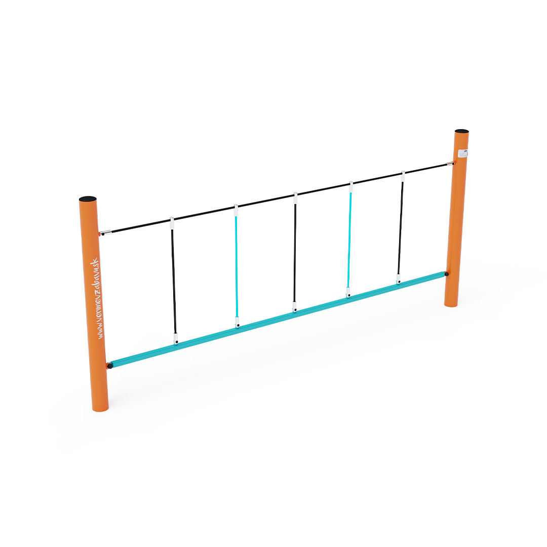 Opičí dráha vhodná pro ručkování do stran. Dítě sice stojí na pevné tyči, ale držet se musí lana, která už tak pevná není. Herní prvek je vyroben ze žárově zinkované oceli s kvalitní povrchovou úpravou, spoje jsou nerezové a zakryté plastovými krytkami pro zvýšení bezpečnosti a životnosti spojů. Lana jsou vyrobena z polyesterových vláken, která jsou vinuta kolem středu. Tato konstrukce lana zvyšuje jeho pevnost a odolnost proti mechanickému namáhání. Samotný polyester má spoustu kladných vlastností. Je odolný vůči mikroorganismům, povětrnostním vlivům, rychle schne po dešti, je stálobarevný a vyznačuje se vysokou pevností.