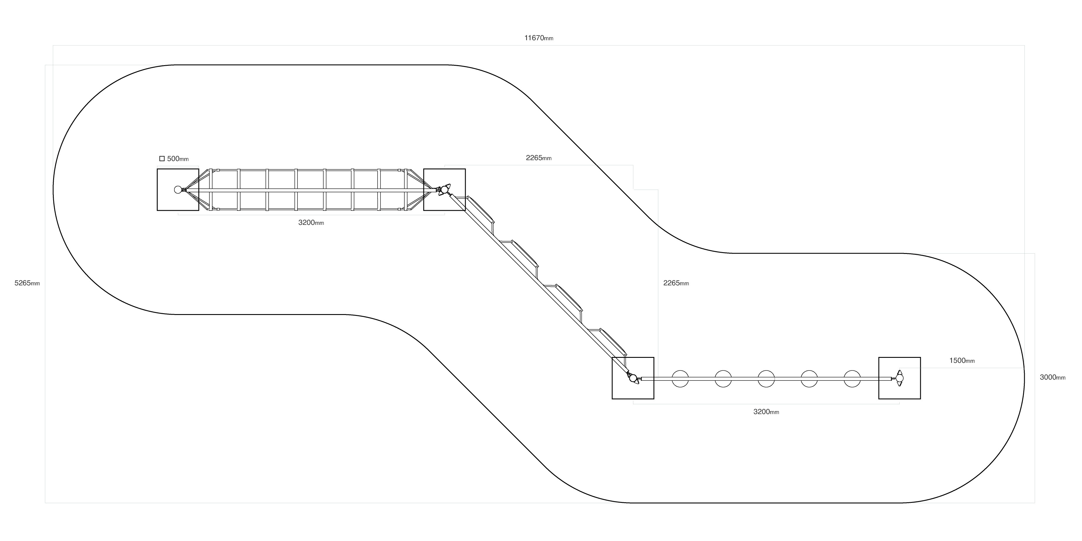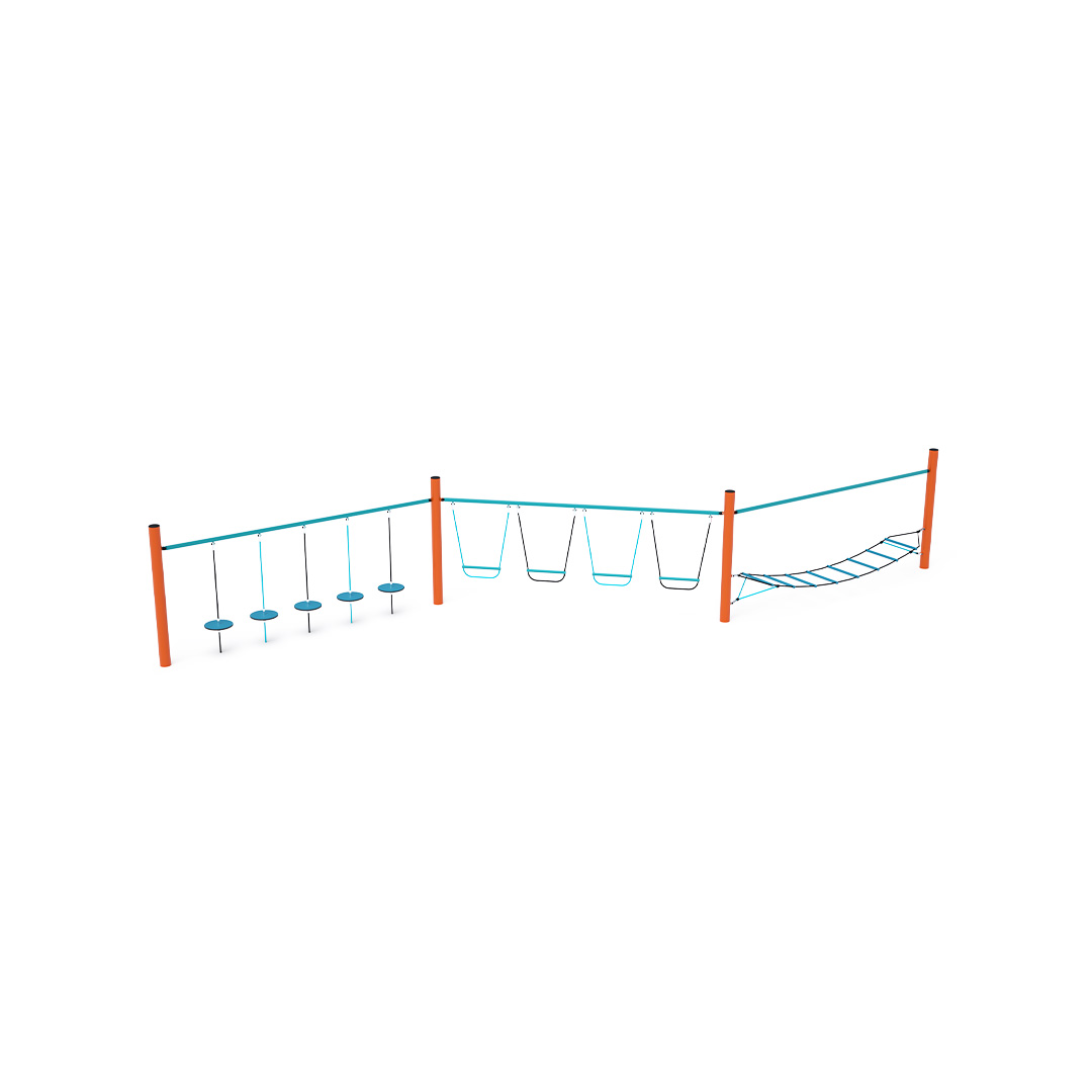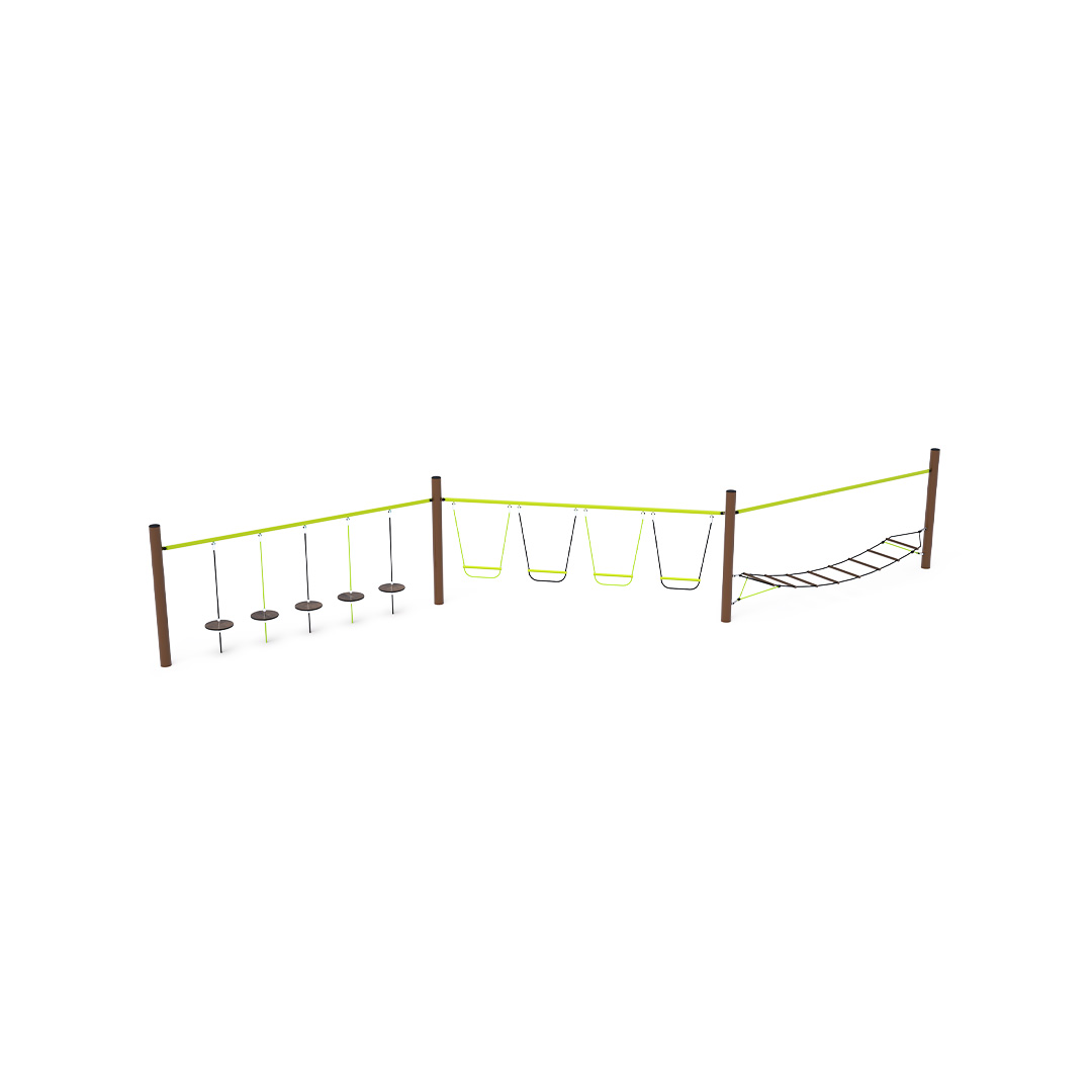 Opičí dráha vytvořená kombinací tří částí. První část vytvořená horizontální „visící“ sítí zabaví děti svou vratkostí. Druhá část je vytvořena svisle zavěšenými stupačkami. Děti si vyzkoušejí, jak je to zábavné a zároveň namáhavé, když nestojí nohama na pevné zemi. Část s „visícími kameny“ prověří schopnost soustředit se a zároveň koordinaci celého těla. Herní prvek je vyroben ze žárově zinkované oceli s kvalitní povrchovou úpravou, spoje jsou nerezové a zakryté plastovými krytkami pro zvýšení bezpečnosti a životnosti spojů. Lana jsou vyrobena z polyesterových vláken, která jsou vinuta kolem středu. Tato konstrukce lana zvyšuje jeho pevnost a odolnost proti mechanickému namáhání. Samotný polyester má spoustu kladných vlastností. Je odolný vůči mikroorganismům, povětrnostním vlivům, rychle schne po dešti, je stálobarevný a vyznačuje se vysokou pevností.