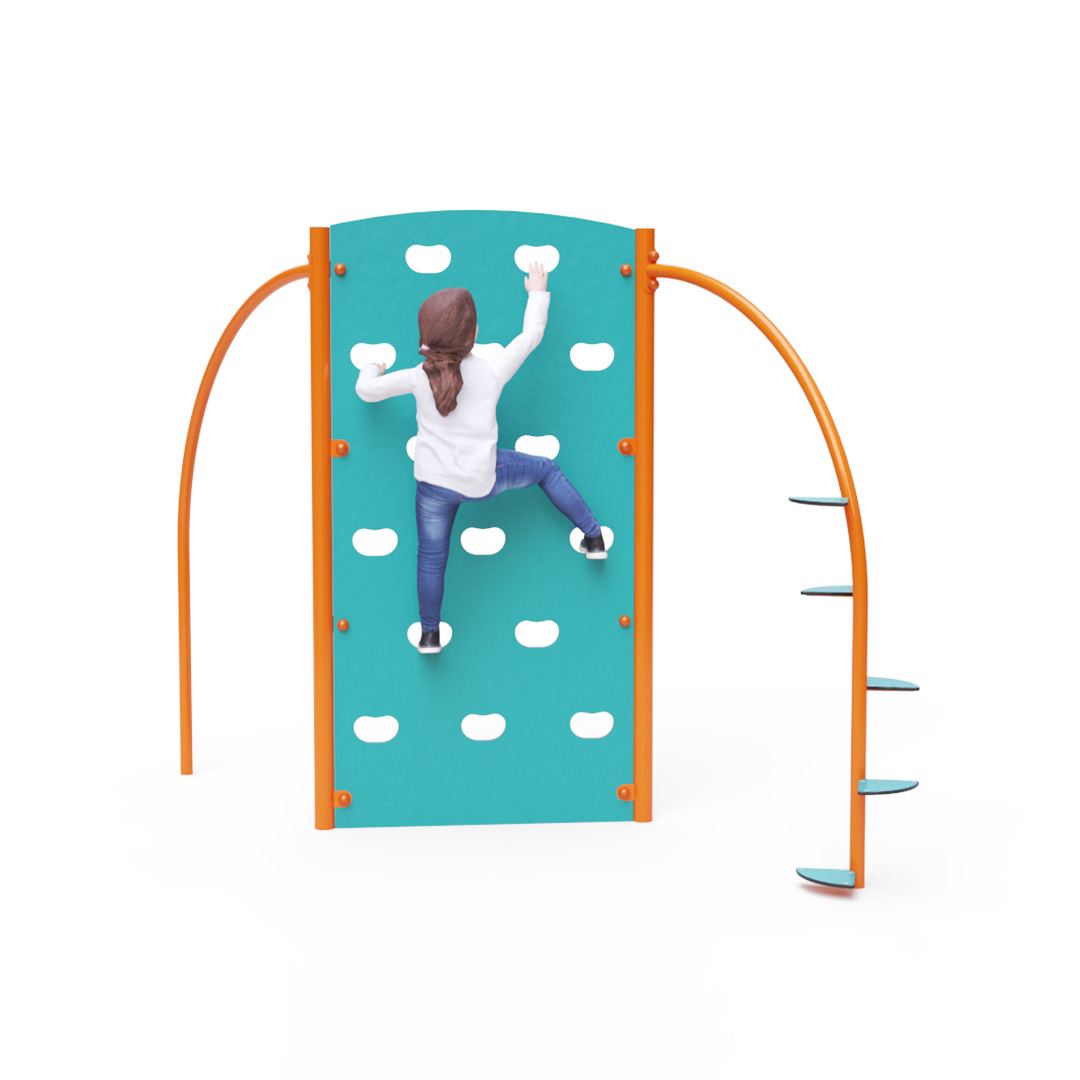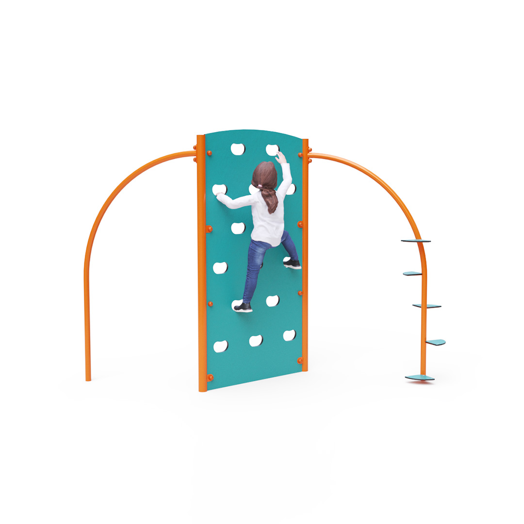 Oboustranná lezecká stěna s lezeckou tyčí a nášlapy. Ačkoli se může zdát, že tento herní prvek je určen spíše pro mládež a na běžné dětské hřiště se příliš nehodí, děti lezecké stěny milují. Konstrukce lezecké stěny je vyrobena z pozinkované oceli, která je ošetřena práškovou vypalovanou barvou. Stěna je navržena s ohledem na dlouhou životnost a bezpečnost. Stěny jsou z HPL materiálu a lezecké úchyty jsou vyřezány přímo do jejich plochy. Jako dopadová plocha je doporučeno použít zatravňovací rohož.