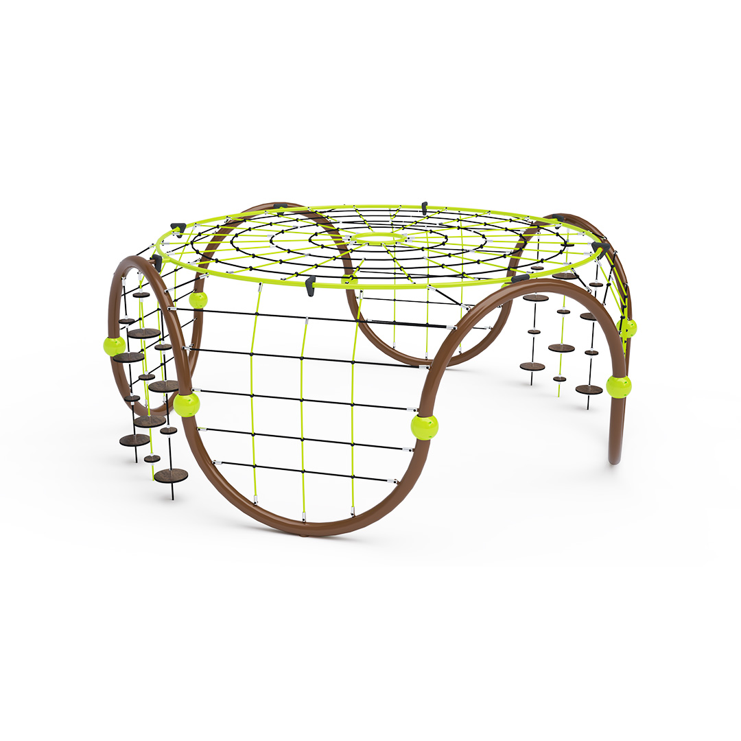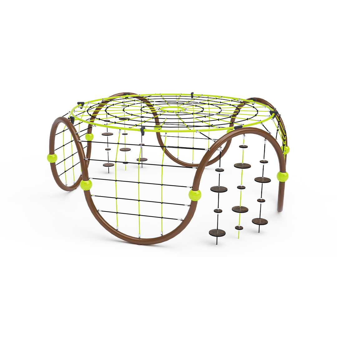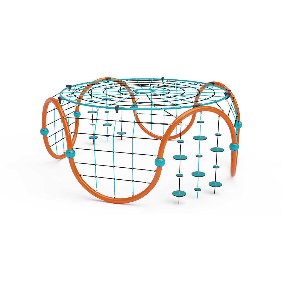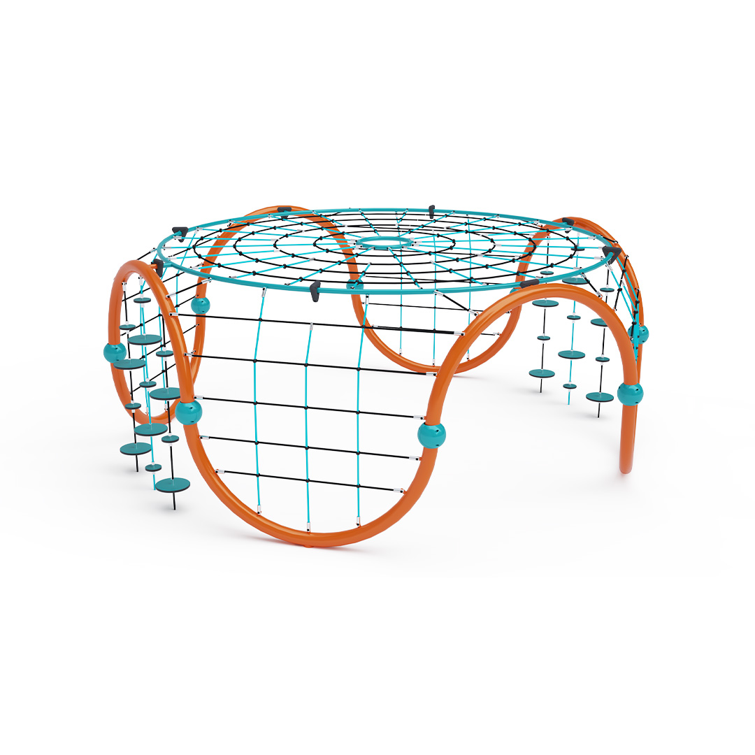 Středně velké lanové iglú se čtyřmi lanovými výlezy a horní velkou lanovou sítí je doplněno dvěma sadami zavěšených balančních kamenů. Herní prvek je vyroben z zinkované oceli s kvalitní povrchovou úpravou – práškovým lakováním. Spoje jsou nerezové a zakryté plastovými krytkami pro zvýšení bezpečnosti a životnosti spojů. Lana jsou vyrobena z polyesterových vláken s ocelovým jádrem, vinutých kolem středu. Tato konstrukce zvyšuje pevnost lana a jeho odolnost vůči mechanickému namáhání. Samotný polyester má řadu výhod – je odolný vůči mikroorganismům, povětrnostním vlivům, rychle schne po dešti, je stálobarevný a vyznačuje se vysokou pevností.