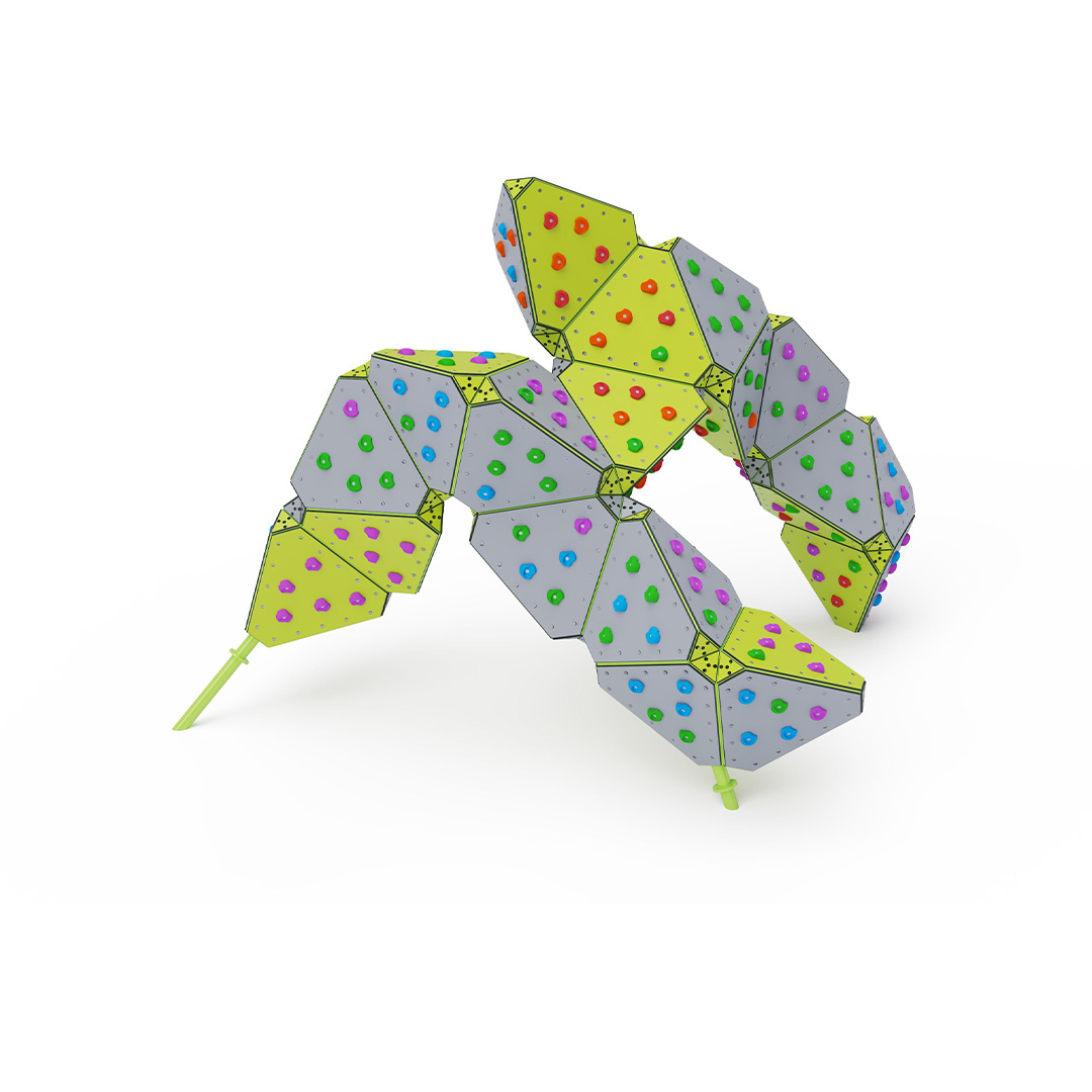 Konstrukce je určena pro lezení a trénink lezeckých technik v exteriéru. Sestava je vhodná pro osoby nad 140cm. Konstrukce sestavy je vyrobena ze zinkované a práškované oceli. Desky jsou vyrobeny z odolného a ekologického HPL materiálu. Lezecké kameny
