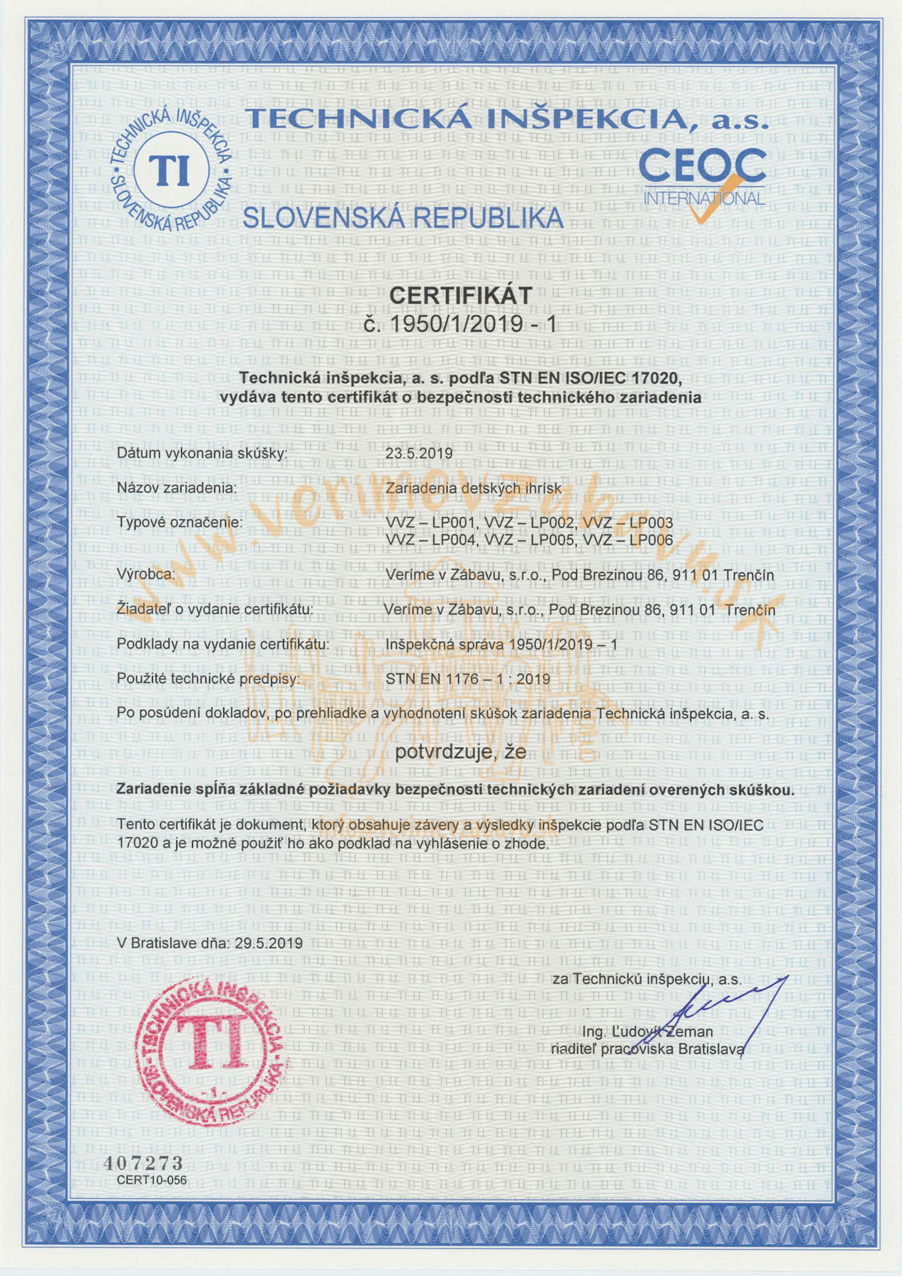 Všechny naše prvky v nabídce prošly kontrolou Technické inspekce a.s., podle příslušné normy, což dokazují i certifikáty které můžete najít na webu u každého produktu. Přestože jsou všechny naše výrobky schváleny Technickou inspekcí a.s., nejpřísnějšími kontrolory jsou pro nás ti, kteří se na cestu za zábavou vydají – a nejsou to jen děti.