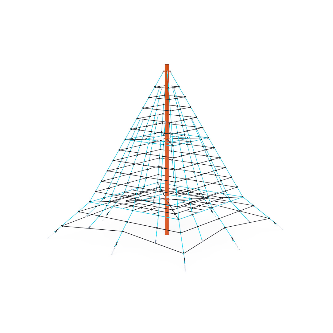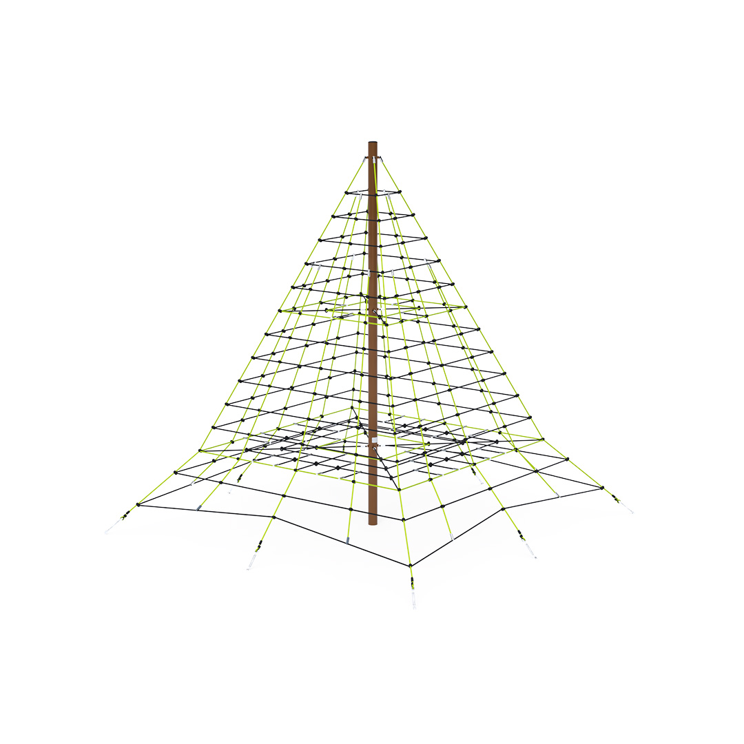 Čtyři a půl metrová lanová pyramida je vhodná pro starší děti, kterým nechybí odvaha vyšplhat až na vrchol. Herní prvek je vyroben ze zinkované oceli s kvalitní povrchovou úpravou. Spoje jsou nerezové a zakryté plastovými krytkami pro zvýšení bezpečnosti a prodloužení životnosti spojů. Lana jsou vyrobena z polyesterových vláken, vinutých okolo středového jádra. Tato konstrukce zvyšuje pevnost lana a jeho odolnost vůči mechanickému namáhání. Polyester je materiál s mnoha výhodami – je odolný vůči mikroorganismům, povětrnostním vlivům, rychle schne po dešti, je stálobarevný a vysoce pevný.