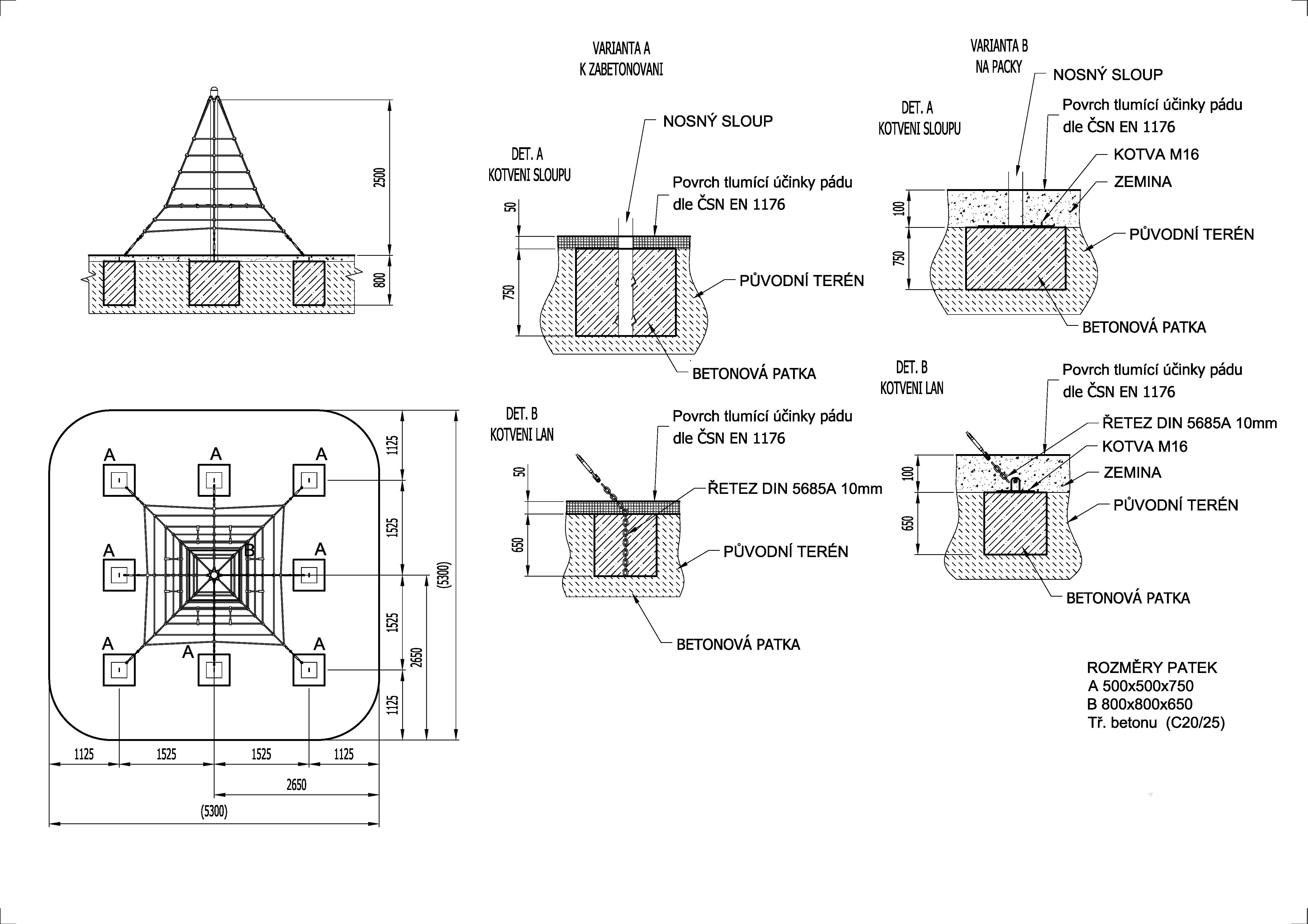Dopadová plocha: 5,3 × 5,3 m (v souladu s ČSN EN 1176-1)