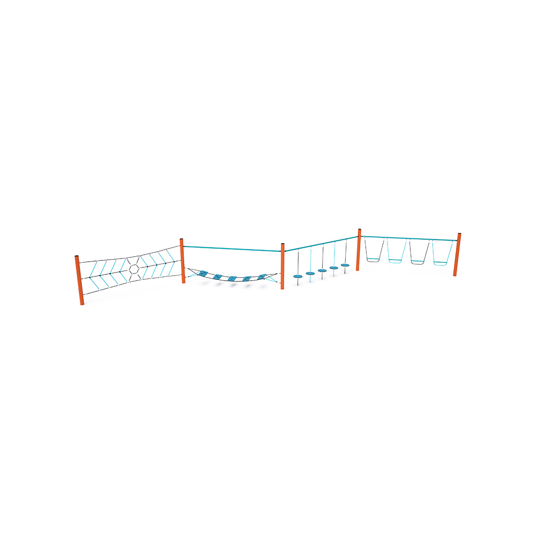 Opičí dráha vytvořená kombinací čtyř částí. Část vytvořená svislou lanovou pavoučí sítí, část vytvořená horizontální „visící“ sítí zabaví děti svou vratkostí, část se svisle zavěšenými stupačkami a část vytvořená svislou lanovou sítí prověří sílu rukou každého dítěte. Herní prvek je vyroben ze žárově zinkované oceli s kvalitní povrchovou úpravou, spoje jsou nerezové a zakryté plastovými krytkami pro zvýšení bezpečnosti a životnosti spojů. Lana jsou vyrobena z polyesterových vláken, která jsou vinuta kolem středu. Tato konstrukce lana zvyšuje jeho pevnost a odolnost proti mechanickému namáhání. Samotný polyester má spoustu kladných vlastností. Je odolný vůči mikroorganismům, povětrnostním vlivům, rychle schne po dešti, je stálobarevný a vyznačuje se vysokou pevností.
