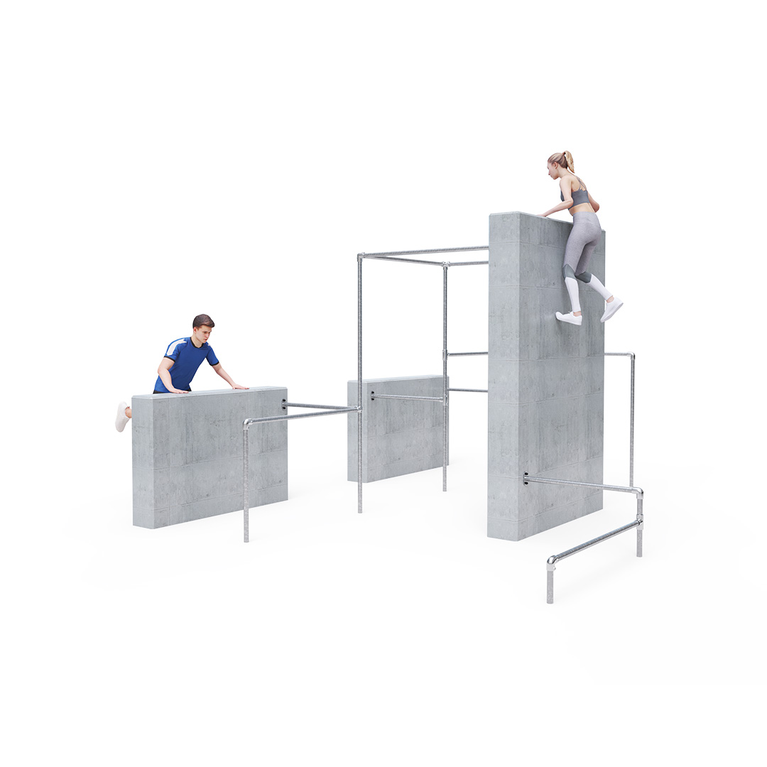 Parkour je disciplína, jejímž základem je schopnost překonávat překážky bezpečně, plynule a účinně s použitím vlastního těla, s důrazem na praktickou sílu, výdrž a rovnováhu. Velmi důležitou součástí je kreativita, plynulost a přesnost, s jakou se překážky zdolávají. Parkourové hřiště VVZ-PP004 je z těch menších. Sestava je složena z jedenácti hrázd různé výšky, dvou betonových stěn a betonového výlezu. Poskytuje tréninkový prostor pro úplné začátečníky i zkušenější traceury.