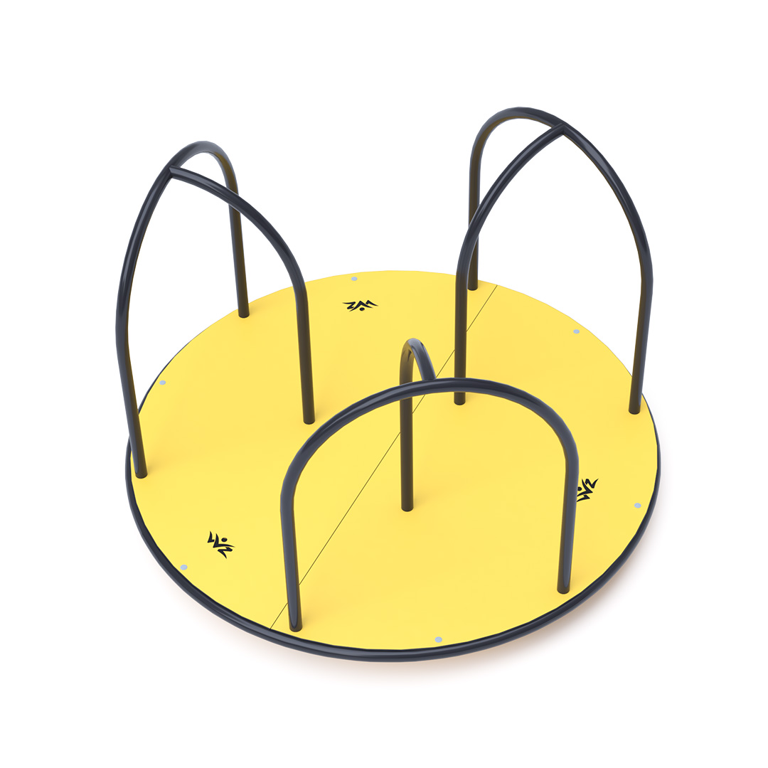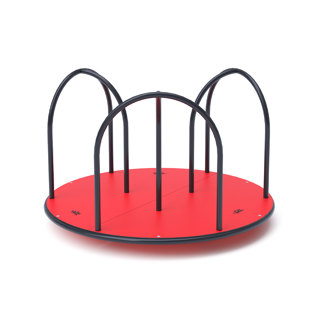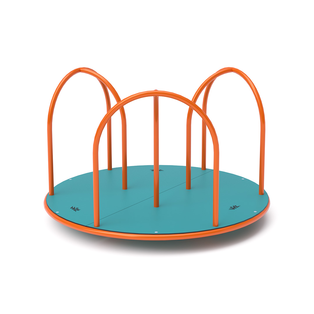 Dětský kolotoč na stání je vyroben z žárově zinkované oceli, která je upravena práškovou vypalovací barvou. Je navržen s ohledem na dosažení dlouhé životnosti a bezpečnosti provozu. Podlaha je vyrobena z ekologického HPL materiálu, který je odolný vůči UV záření, netoxický, recyklovatelný a nelámavý. Nehrozí tak poranění dětí ostrými hranami nebo úlomky.