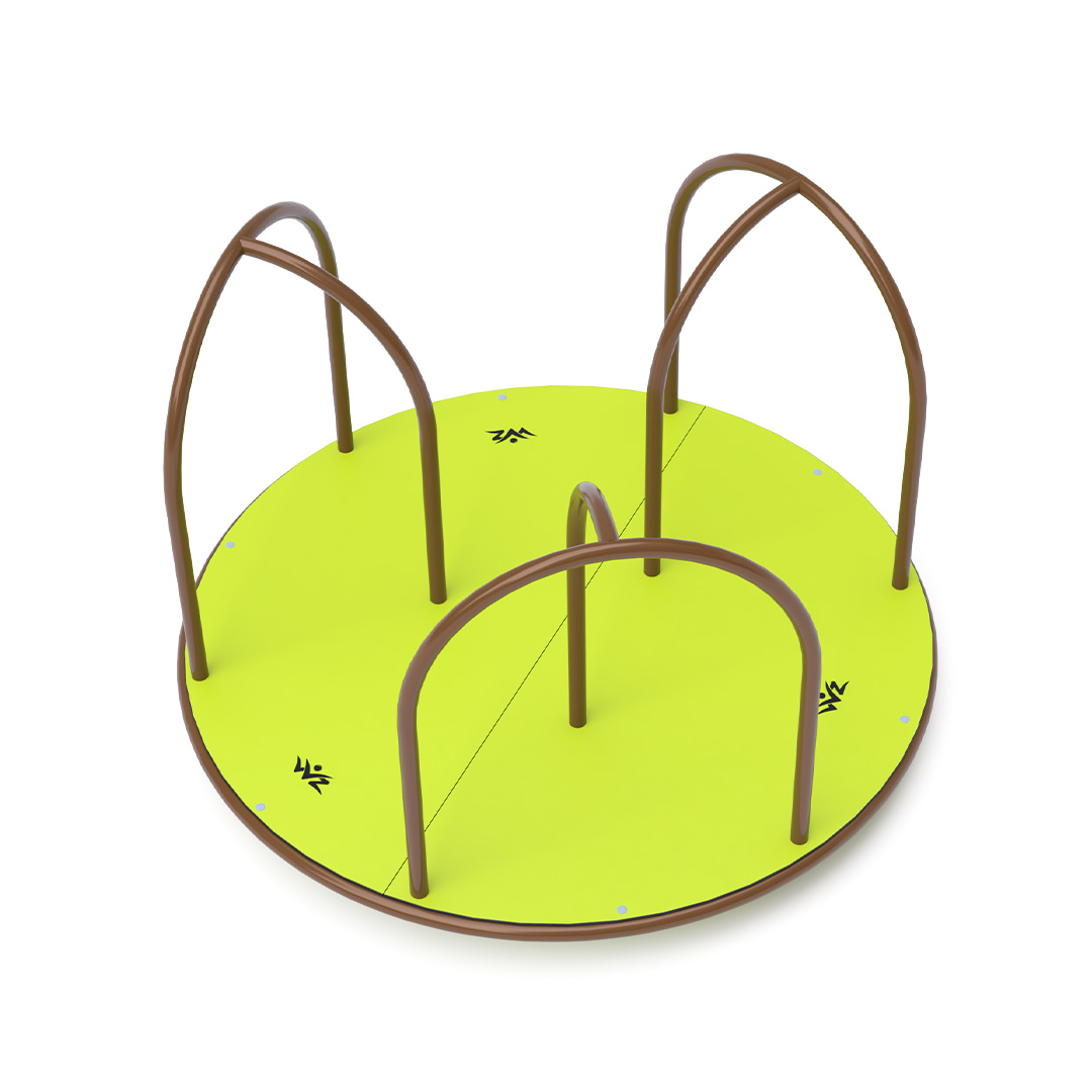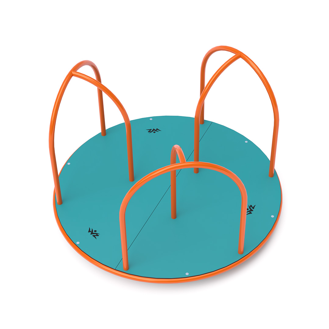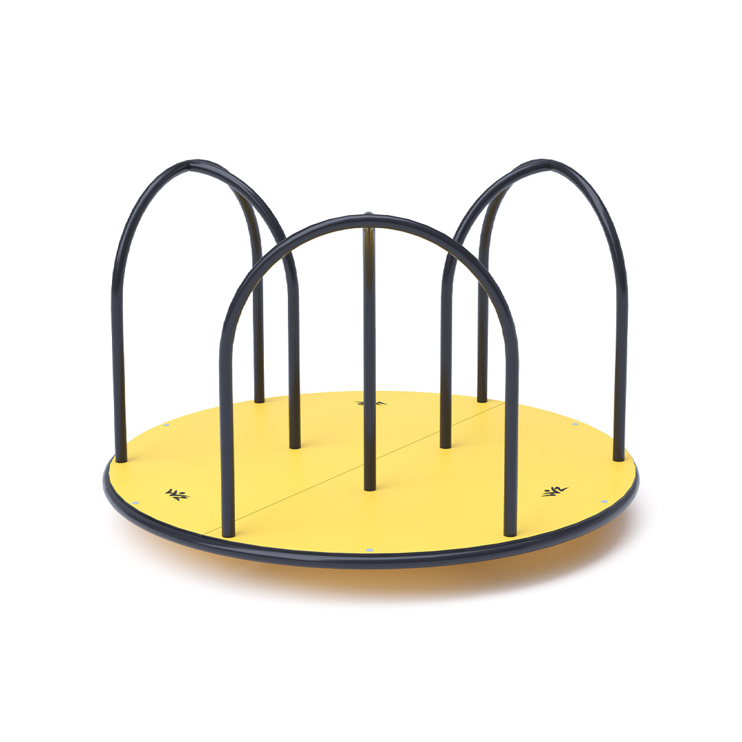 Dětský kolotoč na stání je vyroben z žárově zinkované oceli, která je upravena práškovou vypalovací barvou. Je navržen s ohledem na dosažení dlouhé životnosti a bezpečnosti provozu. Podlaha je vyrobena z ekologického HPL materiálu, který je odolný vůči UV záření, netoxický, recyklovatelný a nelámavý. Nehrozí tak poranění dětí ostrými hranami nebo úlomky.