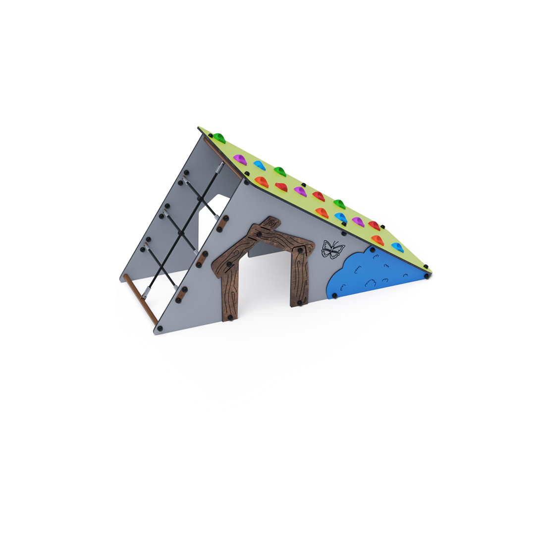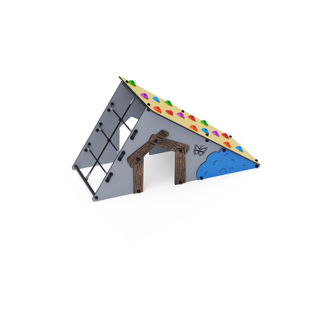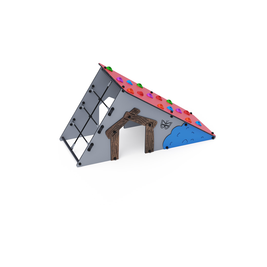 s lezeckými kameny a šikmou lanovou stěnu. Konstrukce domečku je vyrobena z pozinkované a práškově lakované oceli. Všechny desky jsou vyrobeny z HPL materiálu s UV ochranou, který je stálobarevný, netoxický a nelámavý. Veškeré spoje jsou nerezové a zakryté plastovými krytkami.