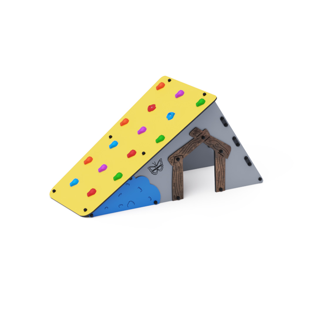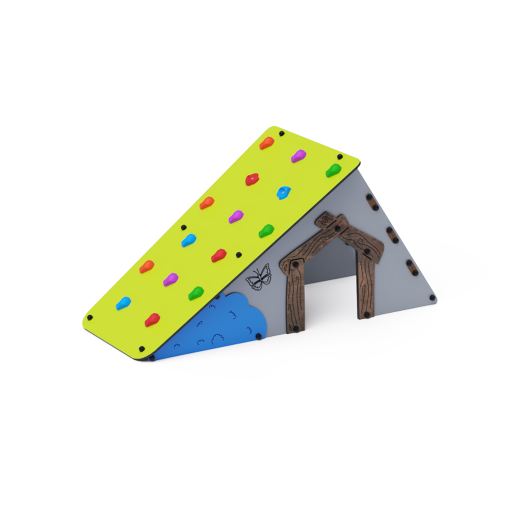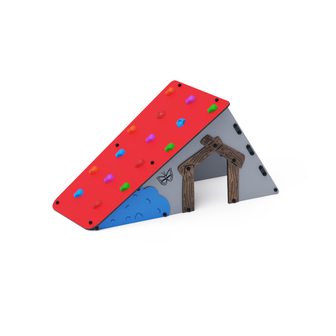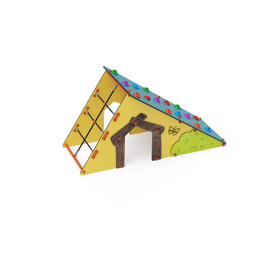 s lezeckými kameny a šikmou lanovou stěnu. Konstrukce domečku je vyrobena z pozinkované a práškově lakované oceli. Všechny desky jsou vyrobeny z HPL materiálu s UV ochranou, který je stálobarevný, netoxický a nelámavý. Veškeré spoje jsou nerezové a zakryté plastovými krytkami.