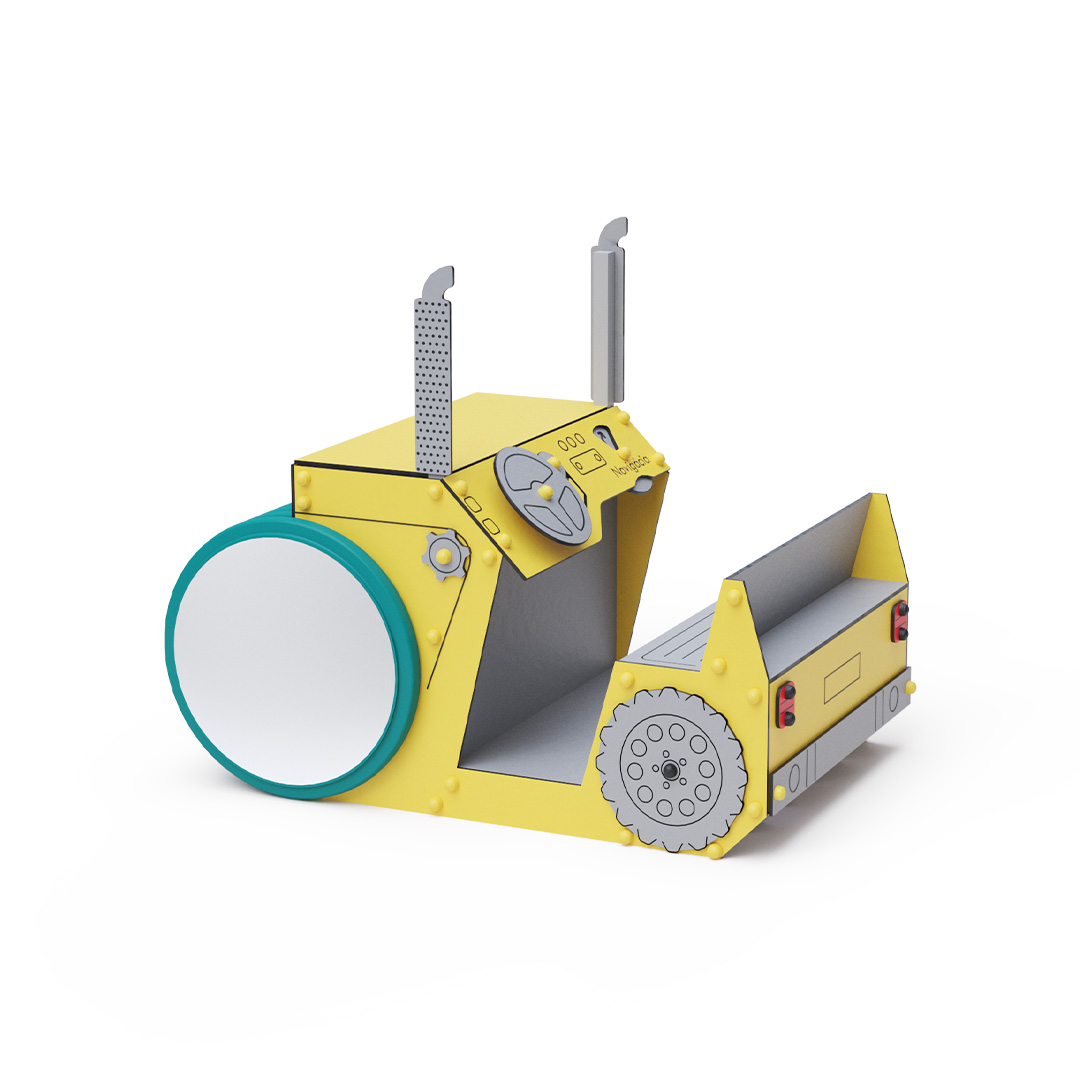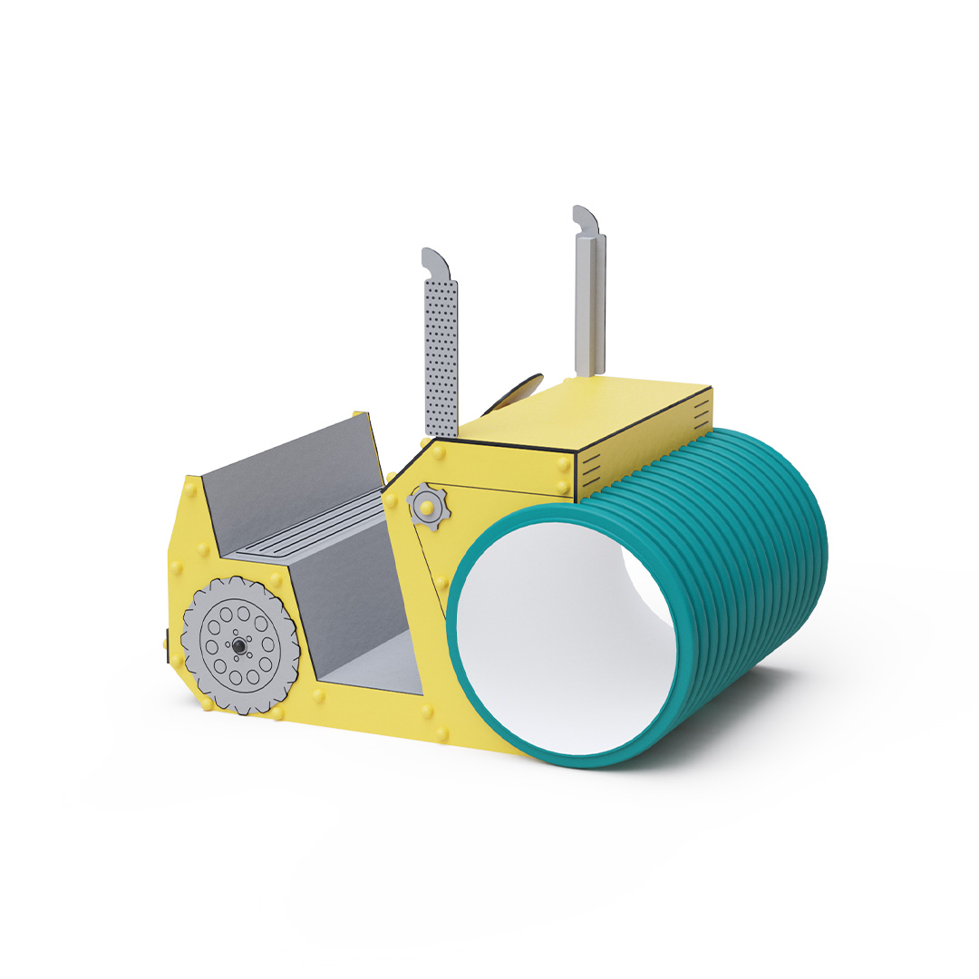 Dopravní prostředek - Parní válec je ideální tematický prvek pro rozvoj dětské fantazie, díky čemuž je vhodný i pro nejmenší děti. Otočný volant a navigace spolu s tematickými prvky zintenzivňuje pocit ze hry.