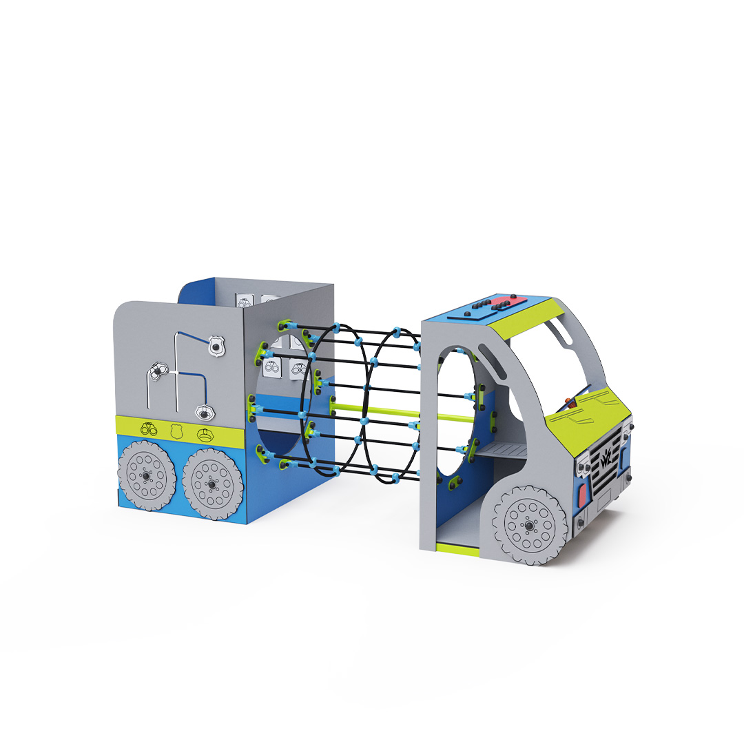 Dopravní prostředek – Hasiči je ideální tematický prvek pro rozvoj dětské fantazie a týmové spolupráce, díky čemuž je vhodný i pro nejmenší děti. Otočný volant, piškvorky a hru třídění spolu s tematickými prvky zintenzivňuje pocit ze hry.