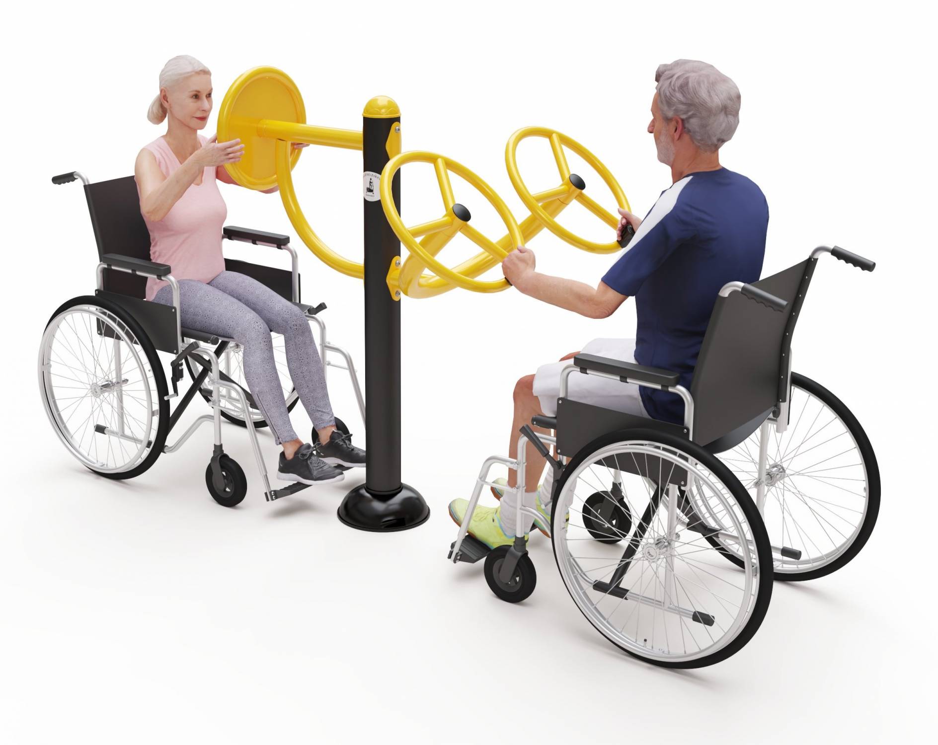 HF13 exteriérové fitness zariadenie pre hendikepovaných – slúži na precvičenie horných končatín a hrudníka. Minimálna potrebná plocha pre umiestnenie stroja je 4450 × 3750 mm.