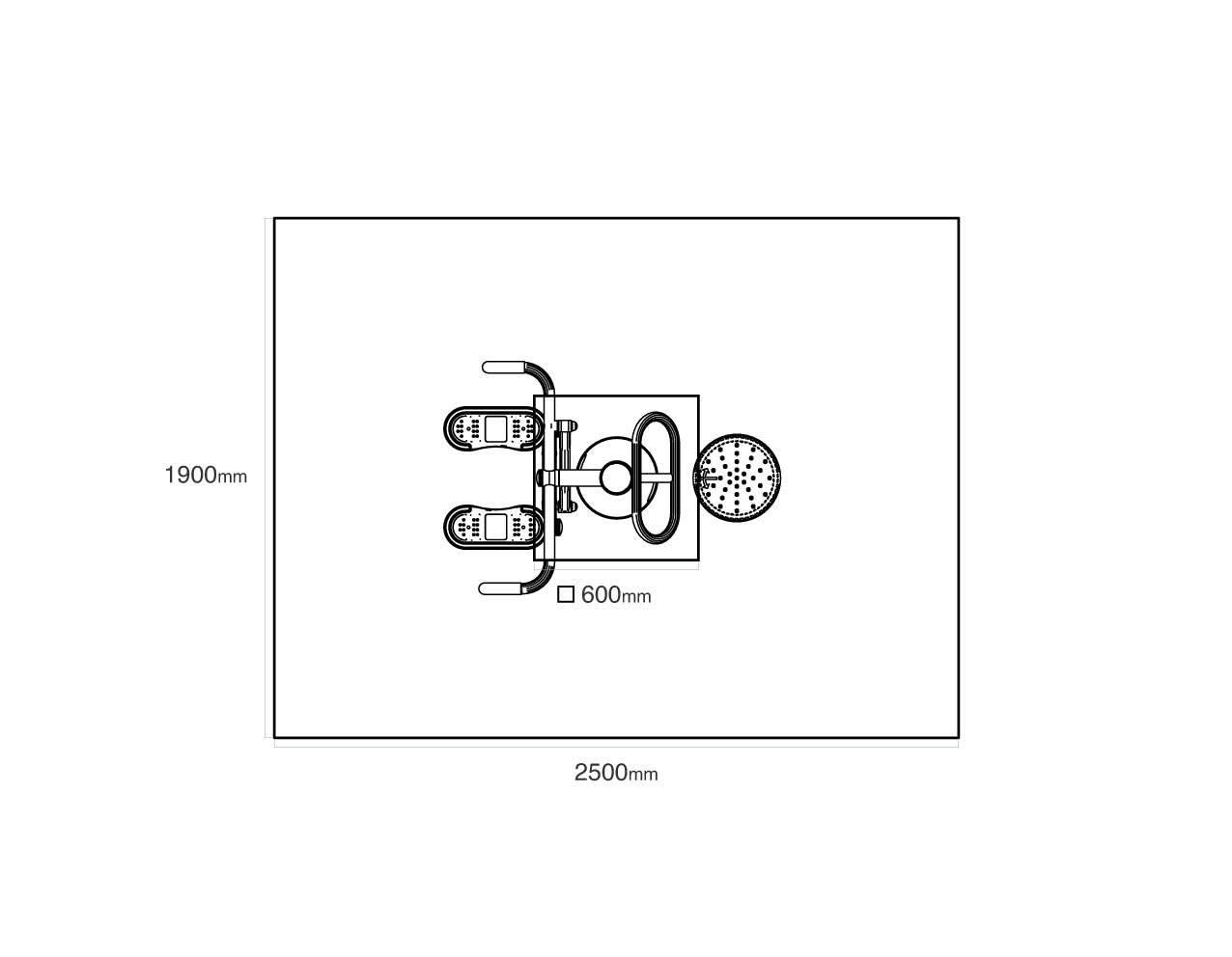Bezpečnostní zóna: 1,9 × 2,5 m