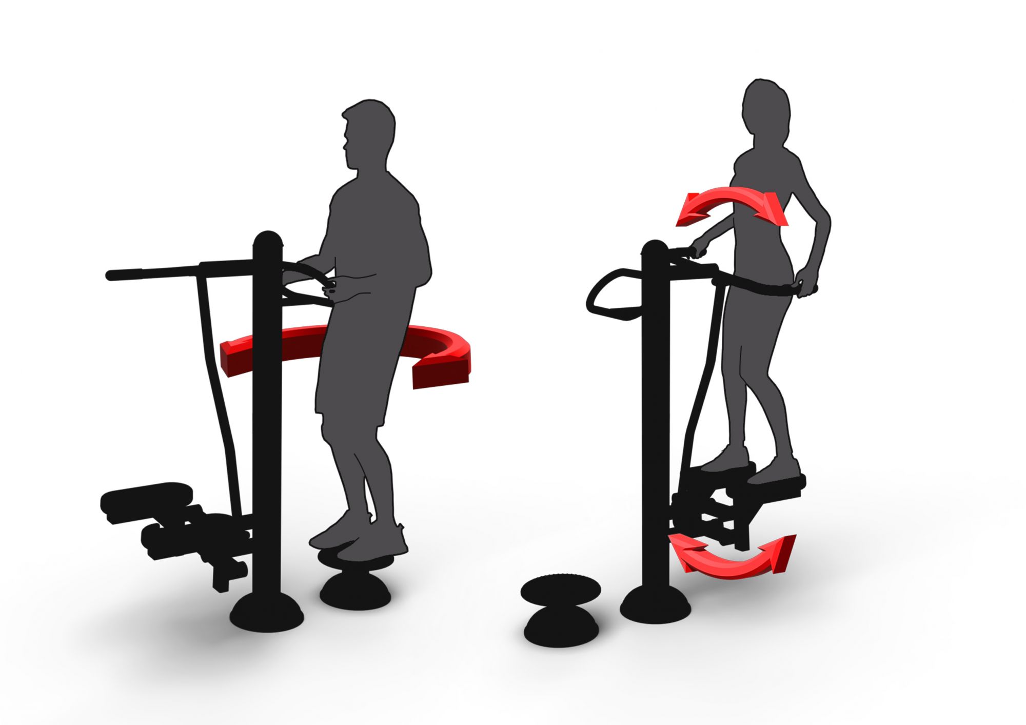 Jak cvičit na Twisteru – pevně se chyťte podpěrné tyče. Postavte se oběma nohama na rotační plošinu. Otáčejte nohama ze strany na stranu pomocí břišních svalů a udržujte vzpřímený postoj. Pohyby provádějte pomalu a kontrolovaně. Počet opakování zvyšujte postupně podle zlepšení kondice.