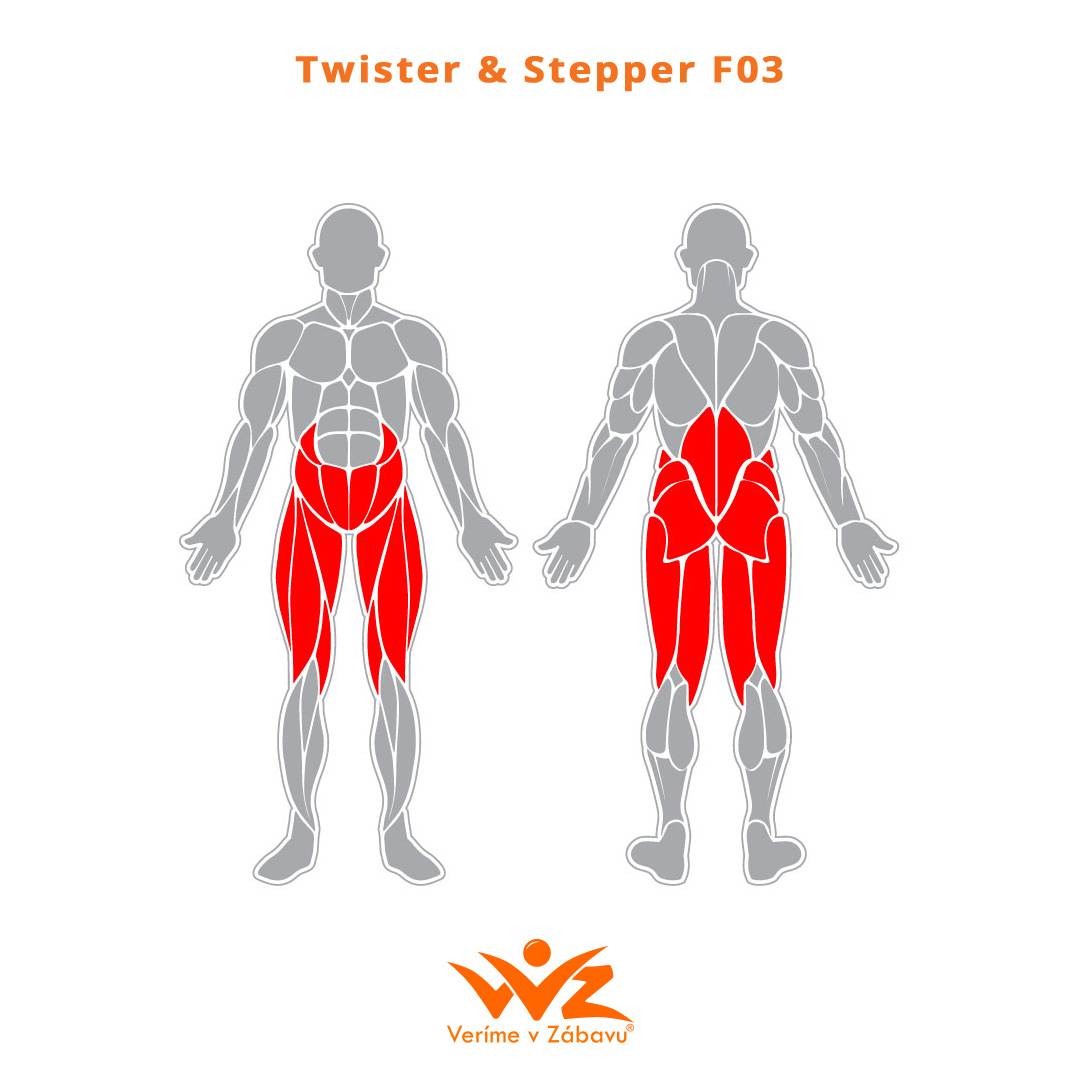 F03 Twister a Stepper – slouží k posílení svalů boků a bederní části páteře. Posílení těchto svalů napomáhá ke správnému držení těla. Cvičení na stepperu posiluje dolní končetiny, formuje hýžďové svaly a linii boků. Minimální plocha pro umístění zařízení musí mít rozměry 4 480 × 3 790 mm.