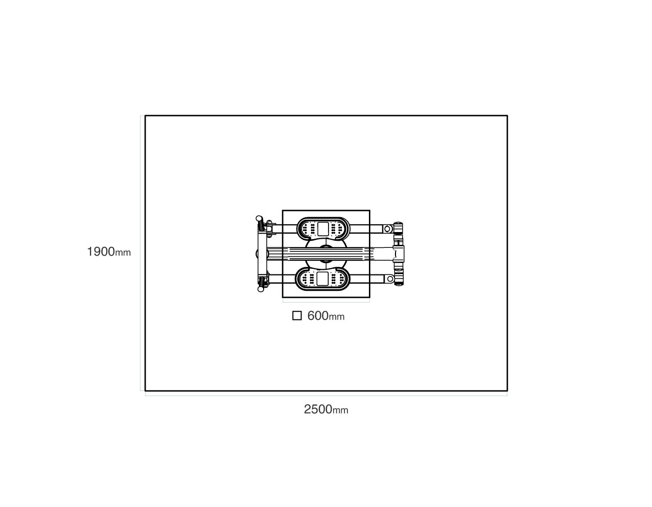 Bezpečnostní zóna: 1,5 × 1,9 m