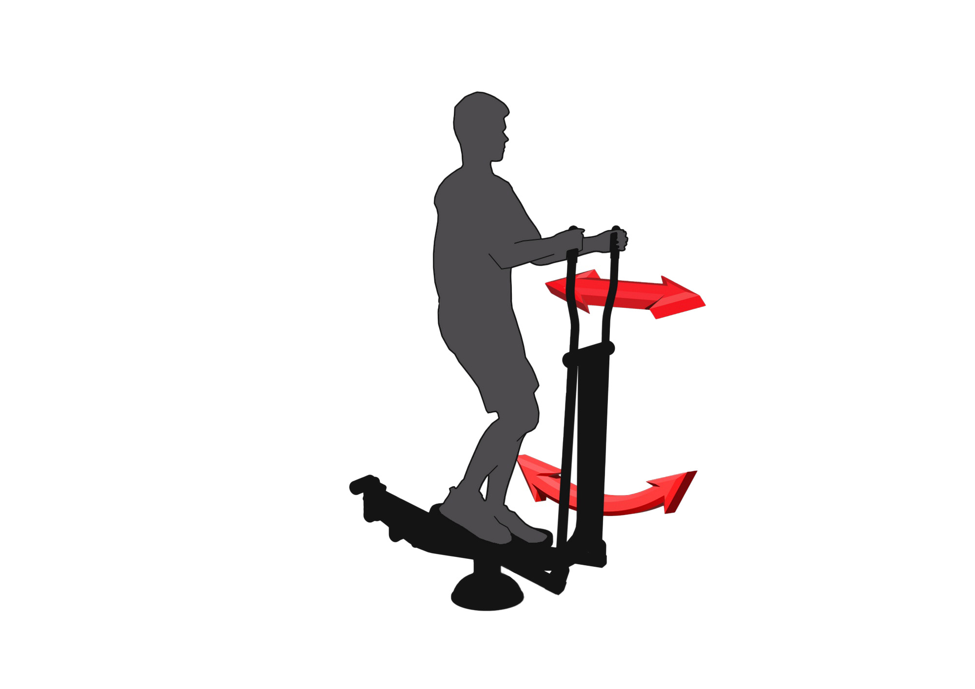 Jak cvičit – pevně uchopte obě rukojeti a postavte se na pedály. Nohy tlačte jako při jízdě na kole, současně střídavě tlačte a táhněte rukojeti. Střídejte směr otáčení nohou dopředu a dozadu pro zvýšení efektivity cvičení. Pohyby provádějte pomalu a kontrolovaně. Počet opakování zvyšujte postupně podle zlepšení kondice.