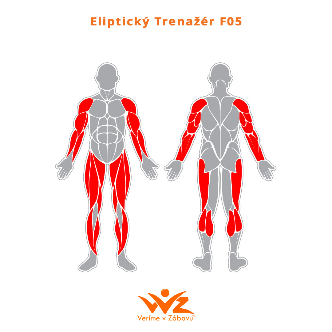 F05 Eliptický trenažér – zařízení určené k procvičení dolní i horní části těla. Při pohybu na trenažéru se nohy pohybují po eliptické dráze, což snižuje zatížení kloubů. Kromě dolních končetin je při cvičení aktivní také horní část těla.