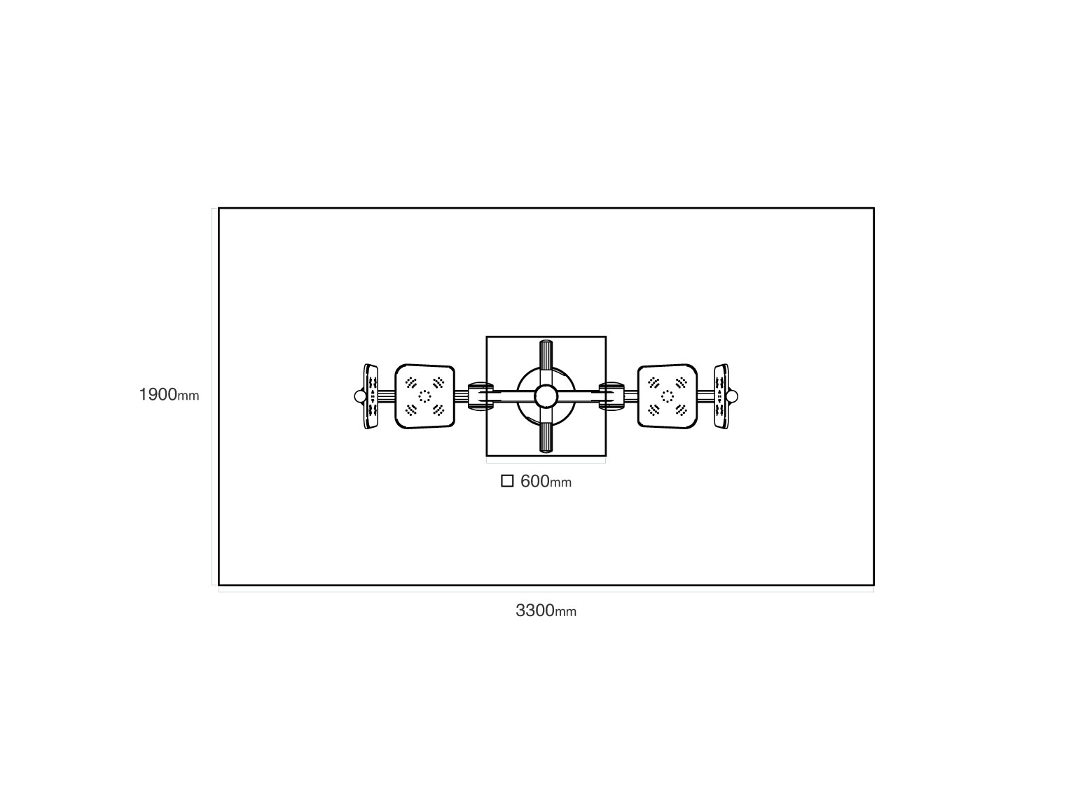 Bezpečnostní zóna: 1,9 × 3,3 m