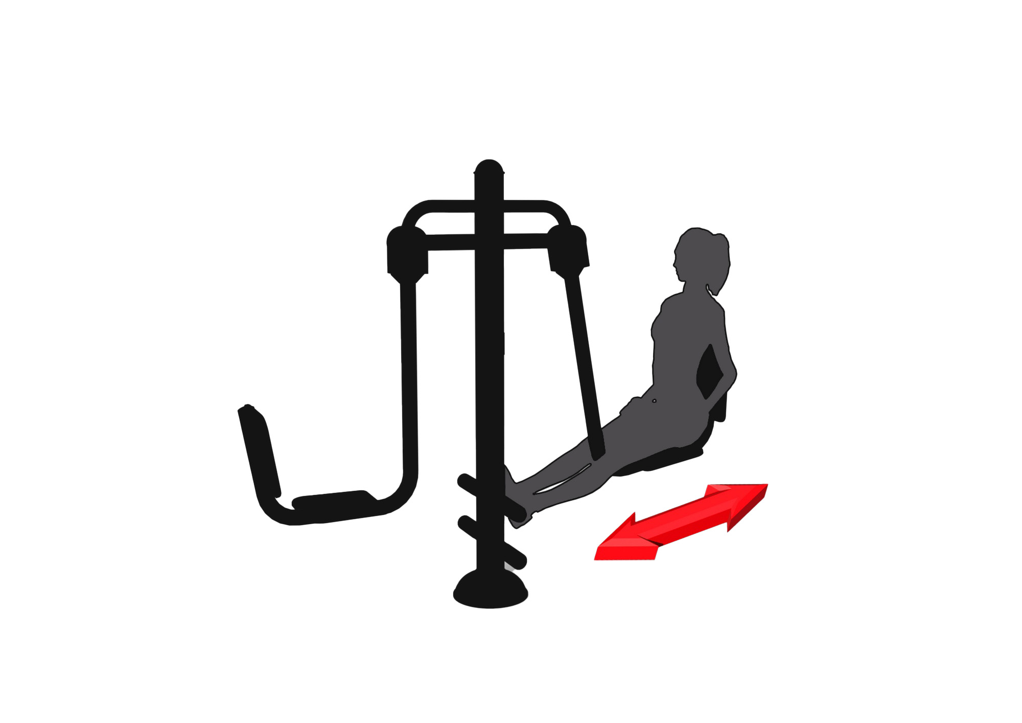 Jak cvičit – posaďte se vzpřímeně s narovnanými zády. Umístěte obě nohy na podložky před sebou a položte si ruce na stehna pro větší stabilitu. Tlačte nohama, ale dávejte pozor, abyste je nevystřelili úplně. Následně pomalu přitahujte nohy zpět do výchozí, resp. startovní polohy. Pohyby provádějte pomalu a kontrolovaně. Počet opakování postupně zvyšujte podle zlepšení kondice.