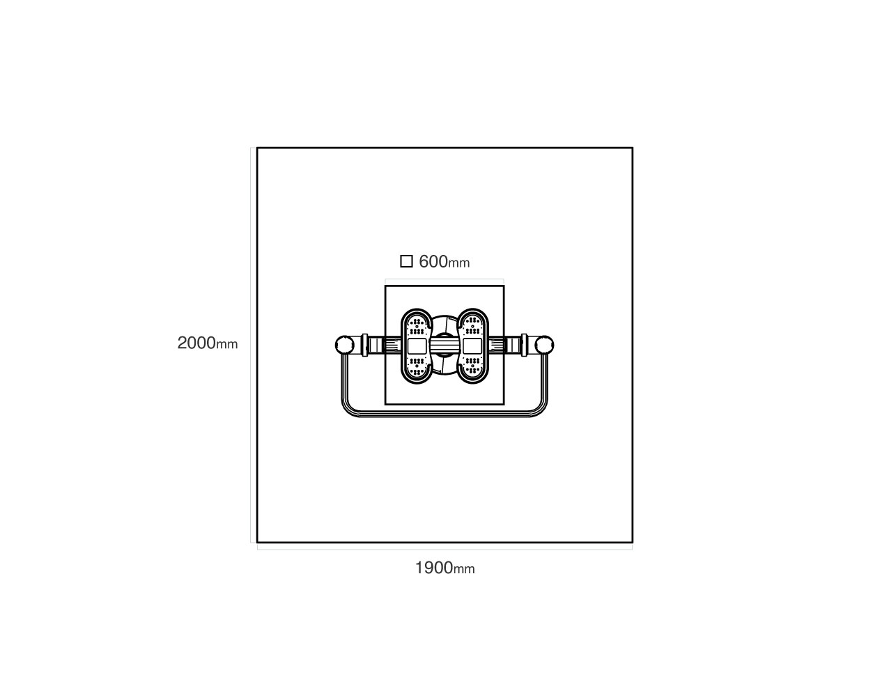 Bezpečnostní zóna: 1,9 × 2,0 m