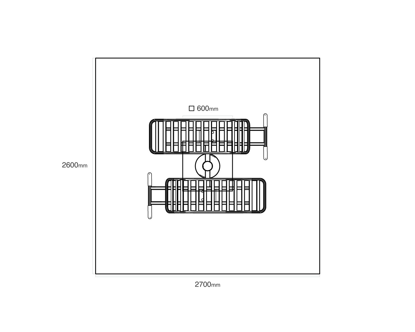Bezpečnostní zóna: 2,6 × 2,7 m