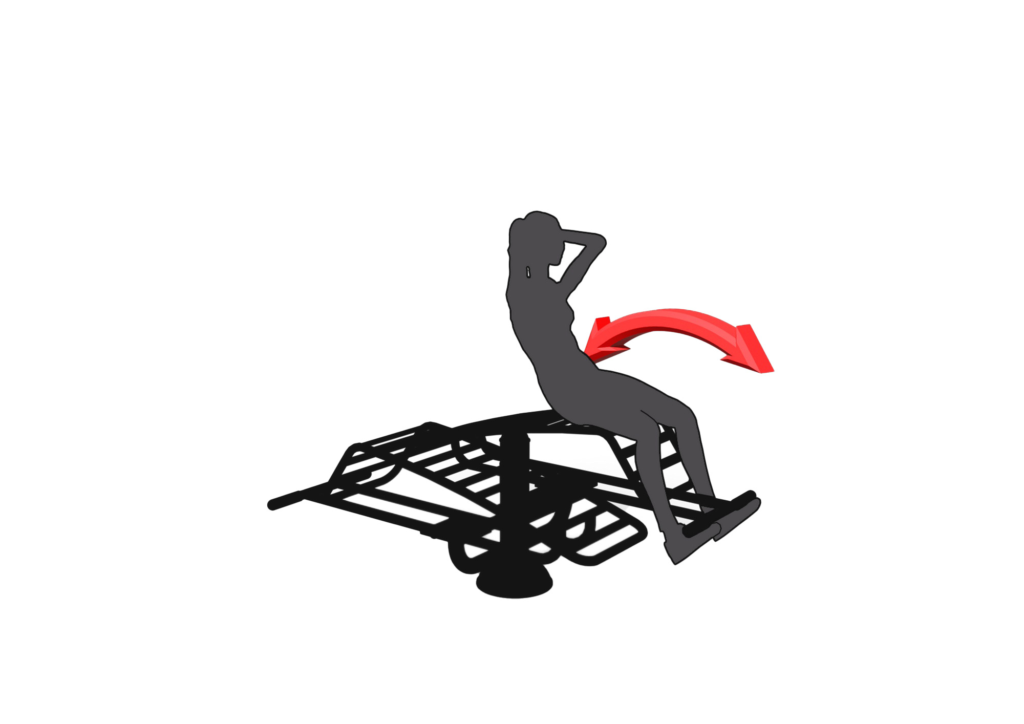 Jak cvičit – lehněte si na záda s nohama opřenýma pod tyčemi. Překřižte si ruce na hrudi. Nedávejte je za hlavu nebo krk. Pomalu zvedněte horní část těla z lavičky, přičemž se ohýbejte v bocích. Nadechujte se při zvedání, vydechujte při návratu. Pohyb by měl být kontrolovaný v obou směrech. Postupujte opatrně, pokud máte jakékoli problémy s páteří. Počet opakování postupně zvyšujte podle zlepšování kondice.