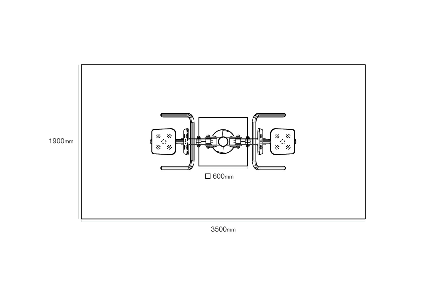 Bezpečnostní zóna: 1,9 × 3,5 m