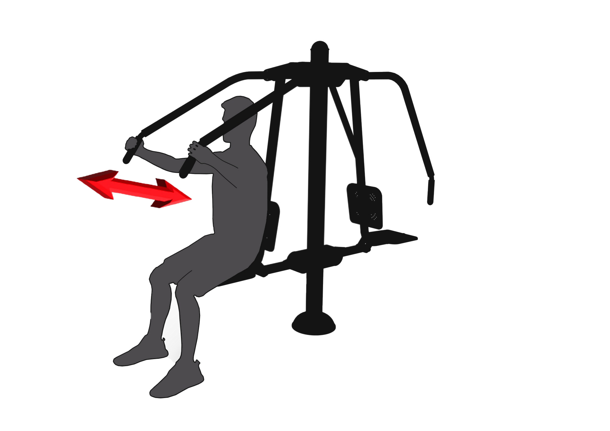 Jak cvičit – posaďte se na sedátko a dbejte na to, abyste měli narovnaná záda. Uchopte obě madla před sebou a tlačte dopředu, až budou ruce téměř úplně natažené a rovné. Pomalu vraťte ruce do výchozí polohy. Provádějte plynulé a kontrolované pohyby. Počet opakování postupně zvyšujte podle zlepšování kondice.
