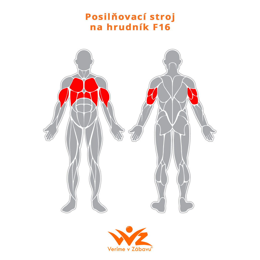 F16 Posilovací Stroj na Hrudník – cvičení na tomto zařízení přispívá k nárůstu síly a svalové hmoty v oblasti hrudníku a horních končetin.