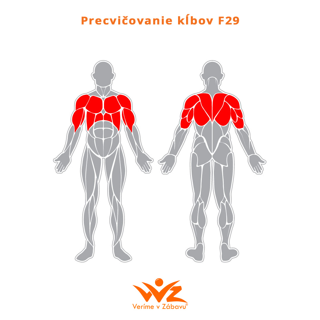 F29 Cvičení kloubů – cvičení na zařízení zvyšuje pohyblivost a pomáhá tvarovat svalstvo na hrudi, ramenou, pažích a zádech.