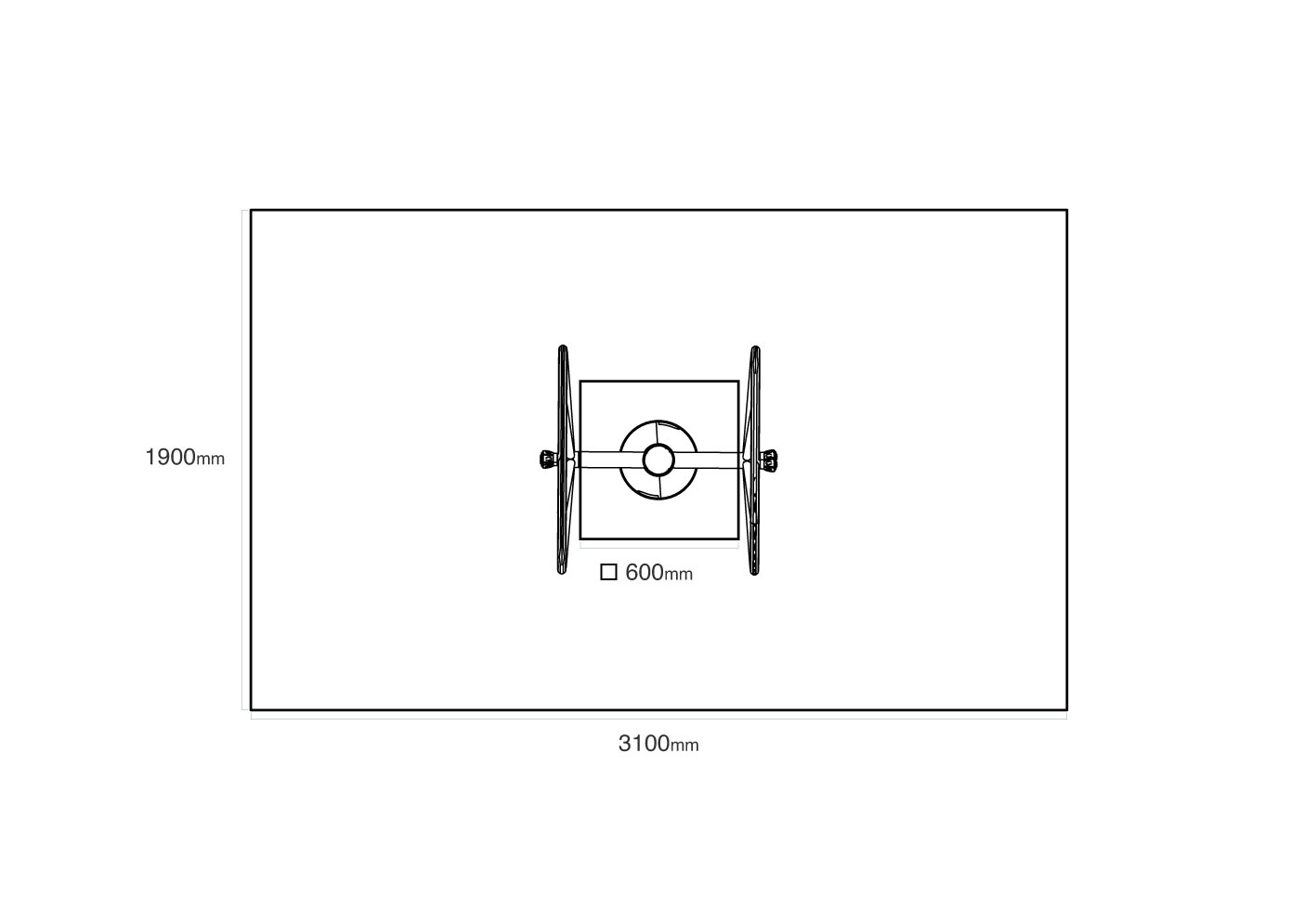 Bezpečnostní zóna: 1,9 × 3,1 m