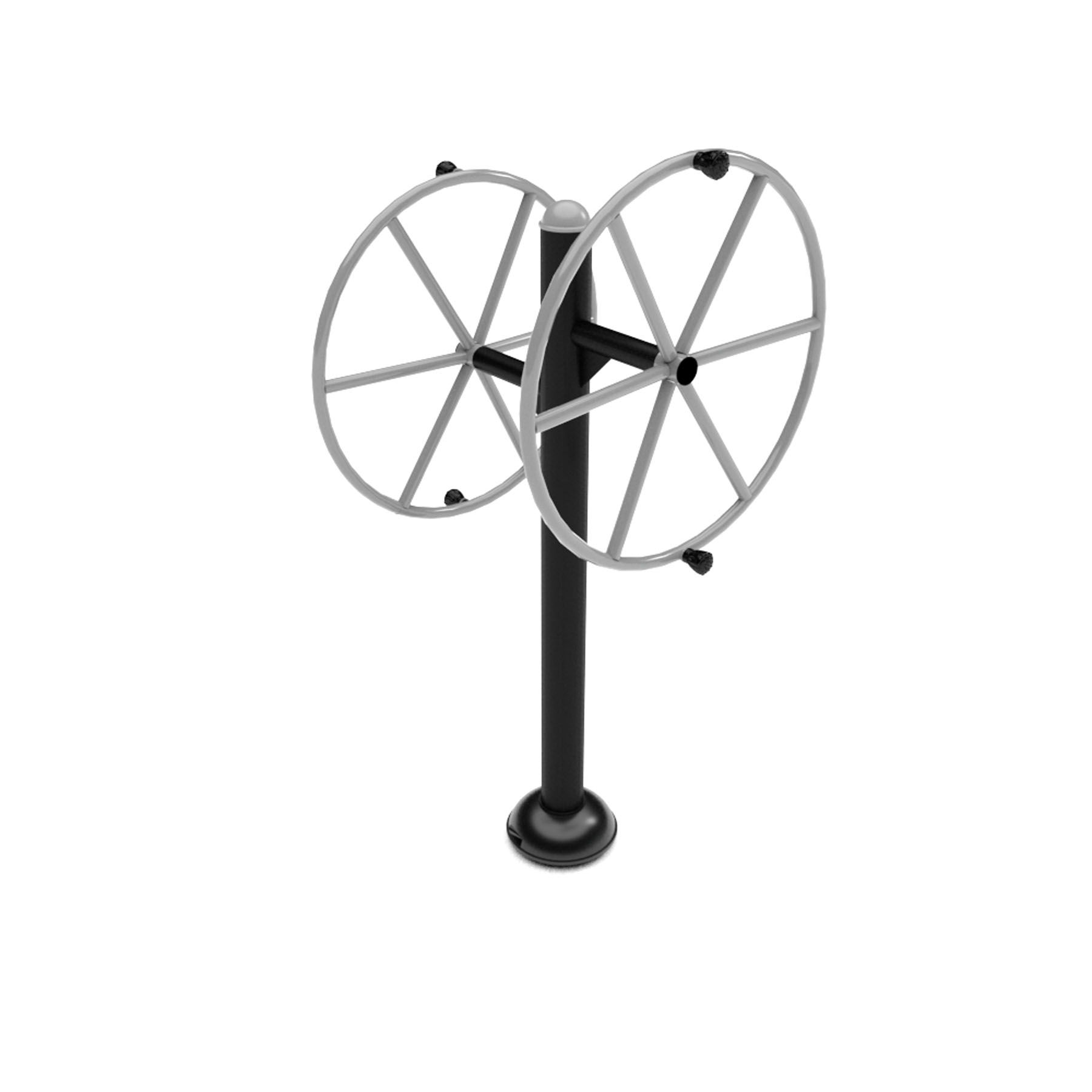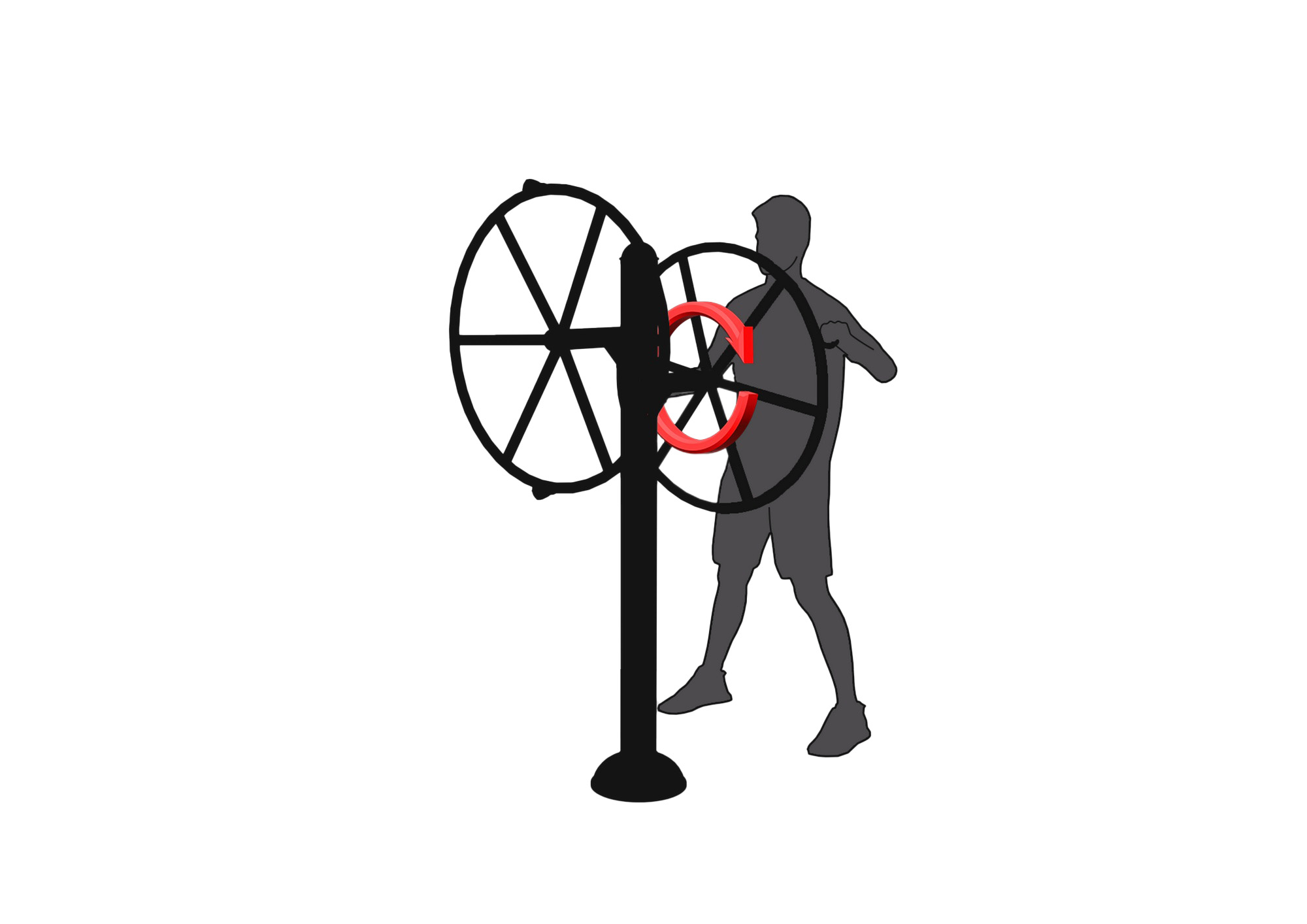 Postavte se čelem ke kolu, tělo směrem k zařízení. Uchopte obě rukojeti oběma rukama. Současně otáčejte kola ve směru nebo proti směru hodinových ručiček. Pro zvýšení efektivity cvičení střídajte směry otáčení. Provádějte plynulé a kontrolované pohyby. Počet opakování zvyšujte podle zlepšování kondice.