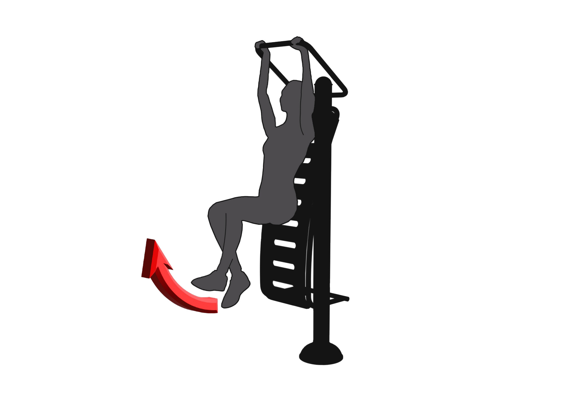 Postavte se vzpřímeně zády k zařízení a pevně se opřete o desku. Uchopte rukojeť nad sebou. Pomalu zvedejte vystřené nohy směrem nahoru, až budou kolmo na Vaše tělo. Nádech při pohybu nohou vzhůru, výdech při pohybu nohou dolů. Provádějte plynulé a kontrolované pohyby. Počet opakování zvyšujte podle zlepšení kondice.