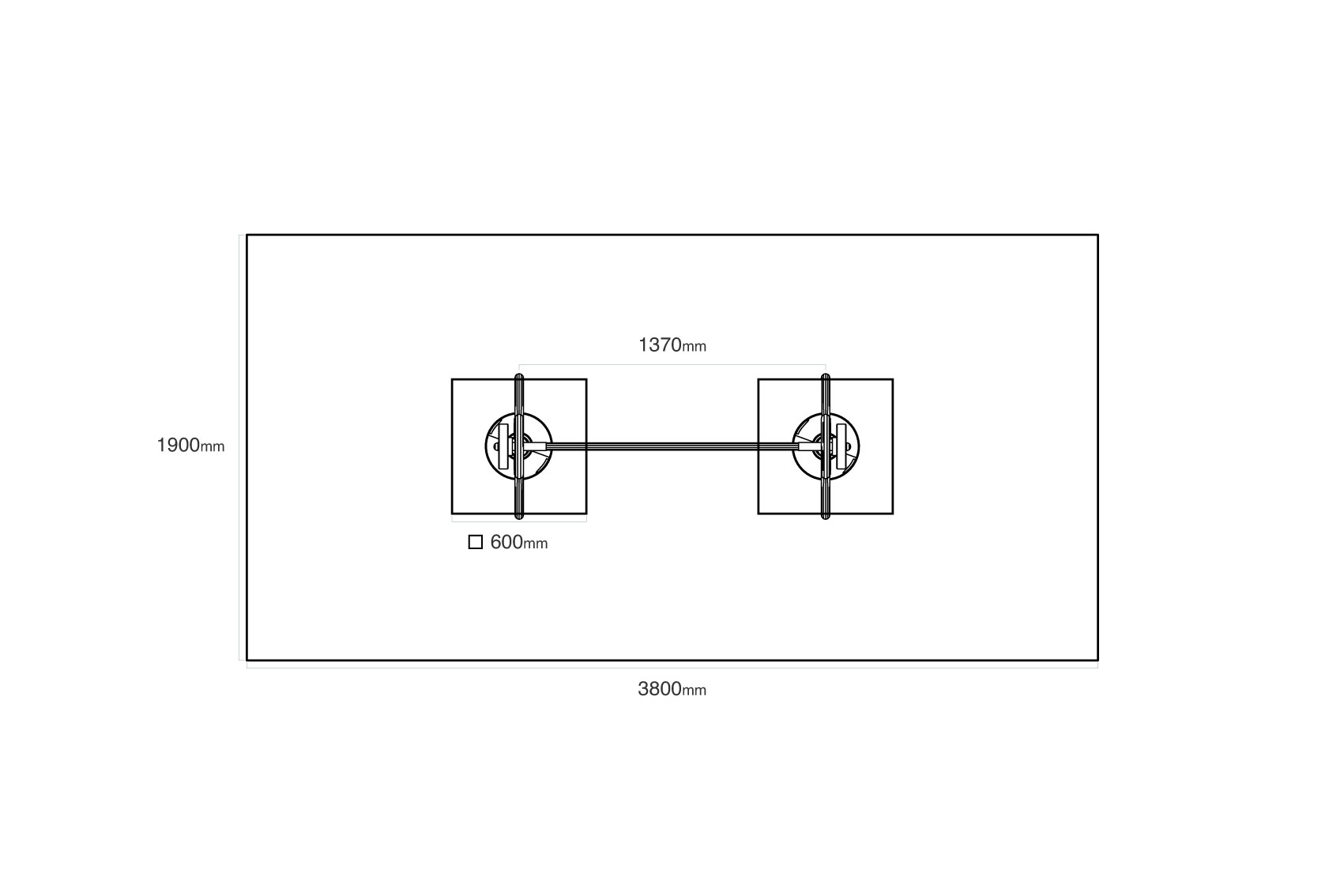 Bezpečnostní zóna: 1,9 × 3,8 m