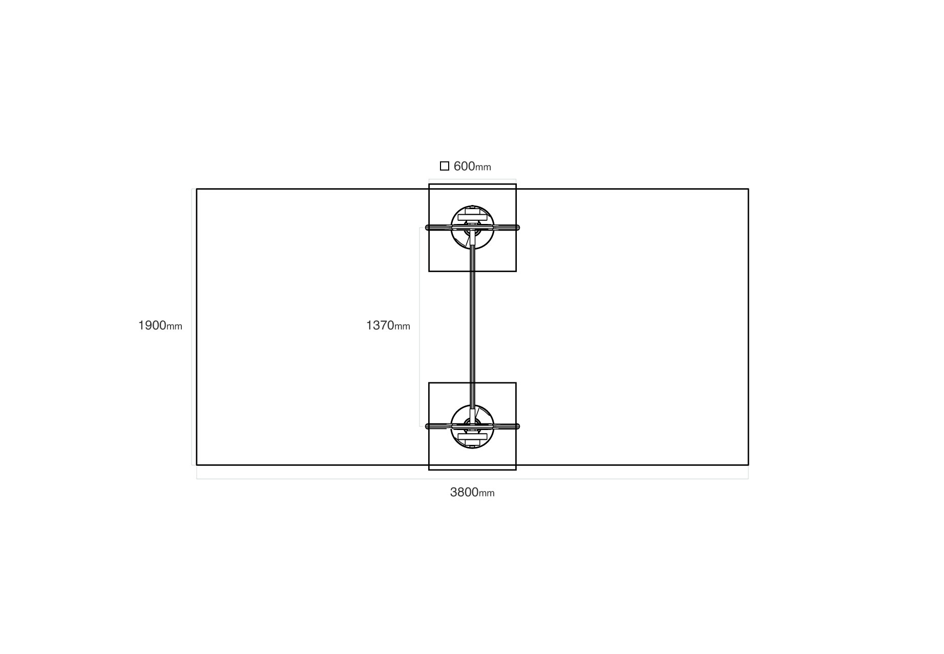 Bezpečnostní zóna: 1,9 × 3,8 m