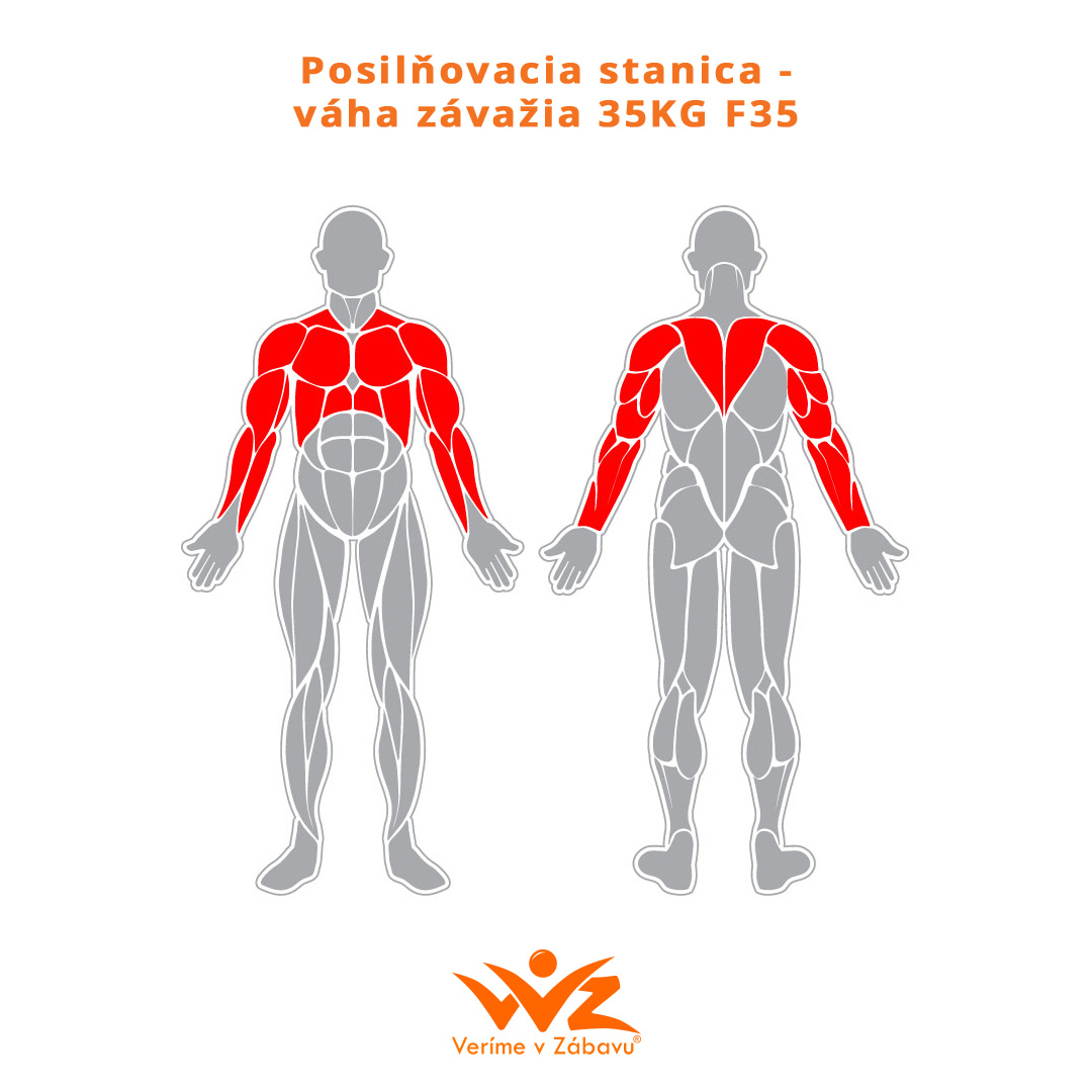 F35 Posilňovací stanice – hmotnost závaží 35 kg – zvyšuje sílu v celé horní části těla, procvičuje hrudník, ruce a ramenní svaly.