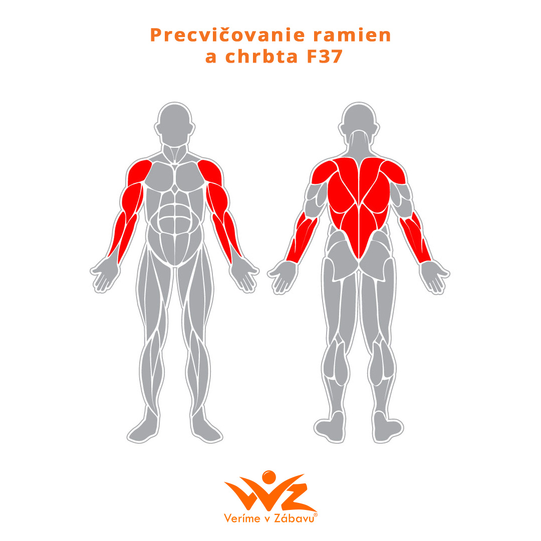 F37 Posilování ramen a zad – cvičení na zařízení zvyšuje pohyblivost a pomáhá tvarovat svalstvo horních končetin, ramen, zad a hrudi.