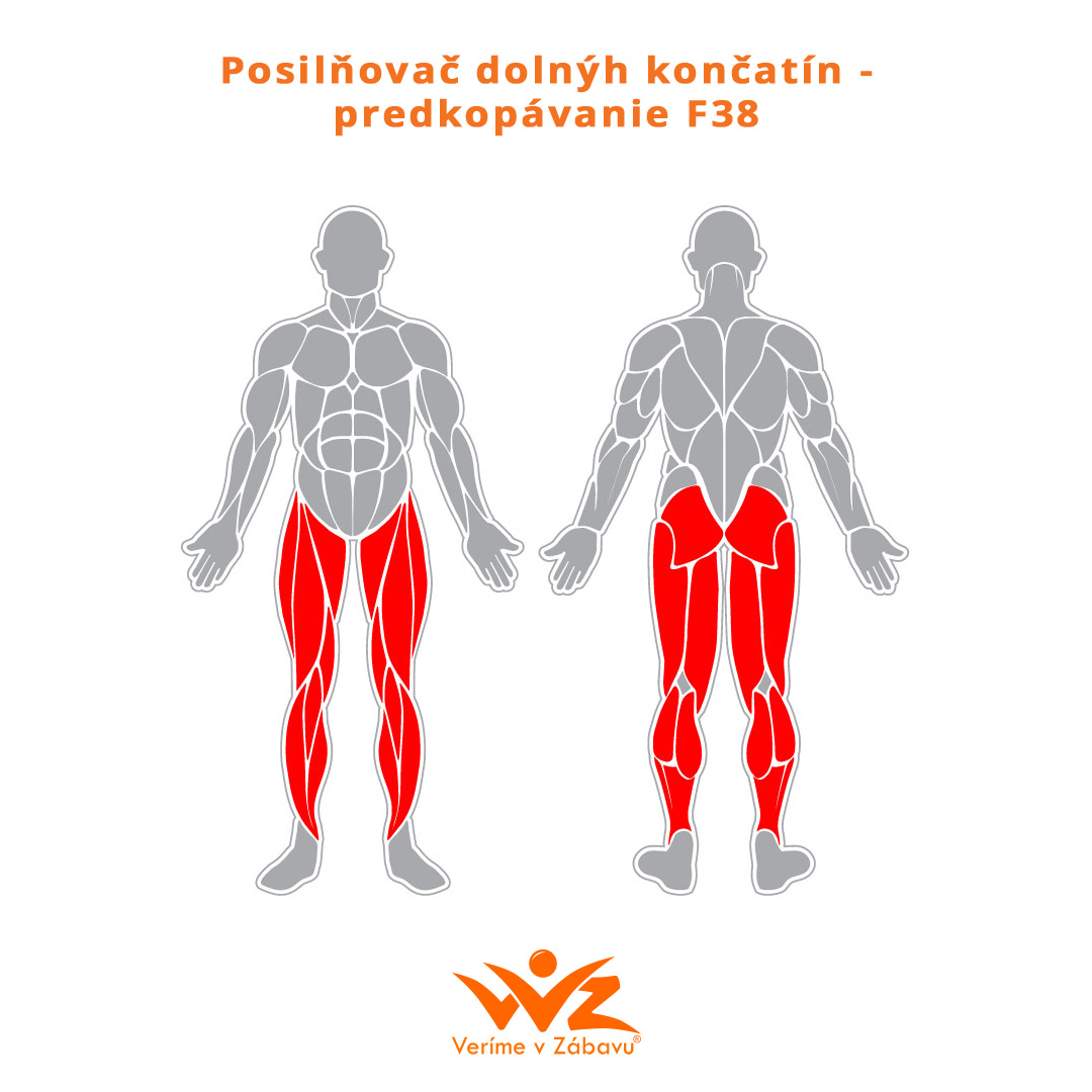 F38 Posilovač dolních končetin – Předkopávání – zařízení určené zejména k tréninku svalů stehen.