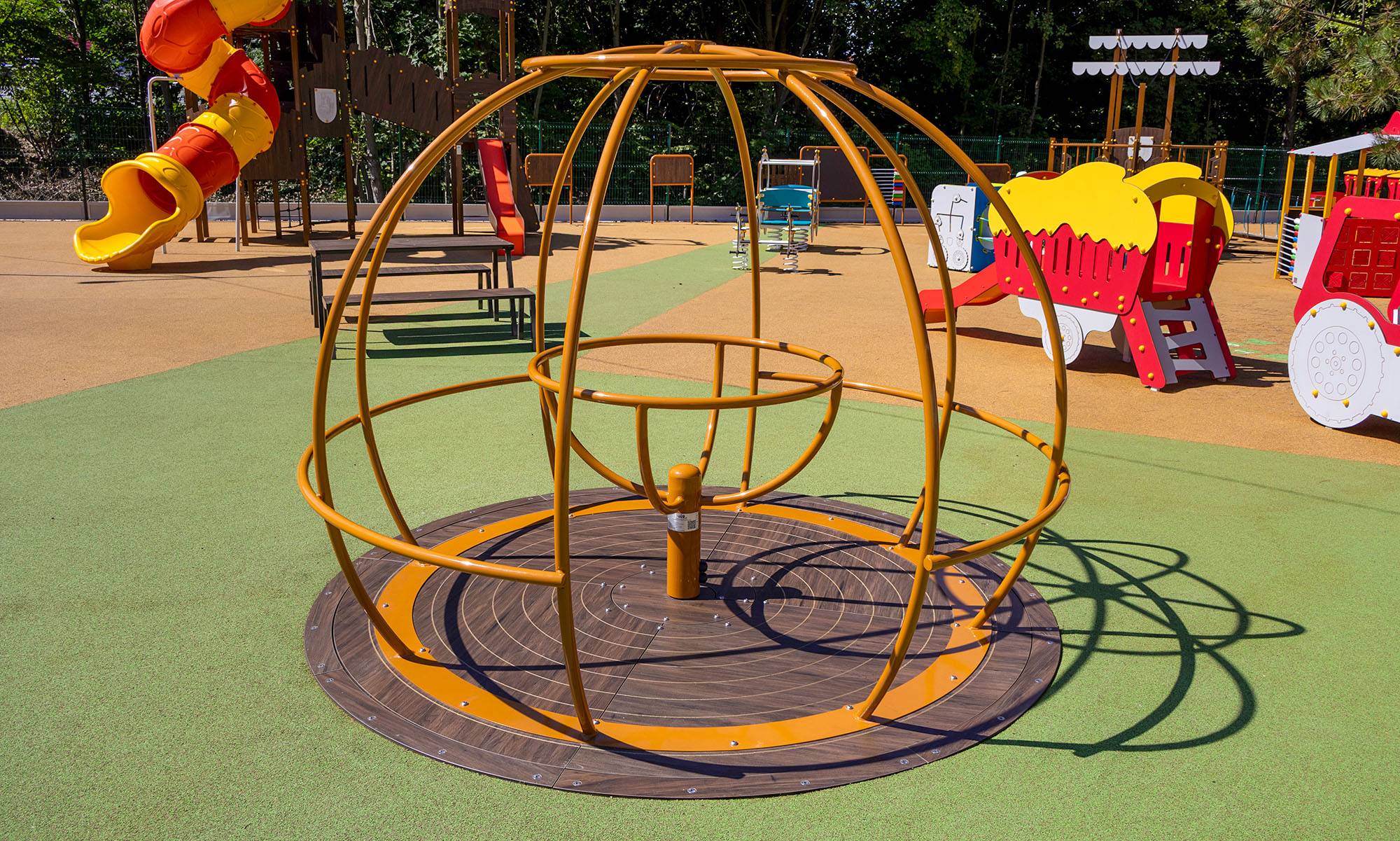 Kolotoč, který nabízí zábavu všem dětem bez rozdílu díky své bezbariérovosti. Konstrukce kolotoče je vyrobena ze zinkované a práškově lakované oceli. Sedátka a podlaha jsou vyrobeny z ekologického HPL materiálu, který je odolný vůči UV záření, netoxický, recyklovatelný a nerozbitný. Tím je eliminováno riziko poranění dětí ostrými hranami nebo úlomky.